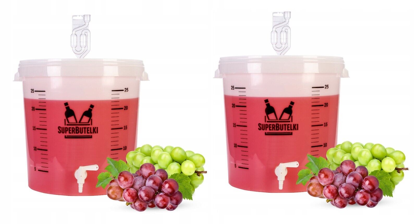 The container is made of plastic with a capacity of 30 liters. The set also includes a practical tap that allows for decanting the beverage without collecting sediment. The bucket also has a lid with a fermentation tube.