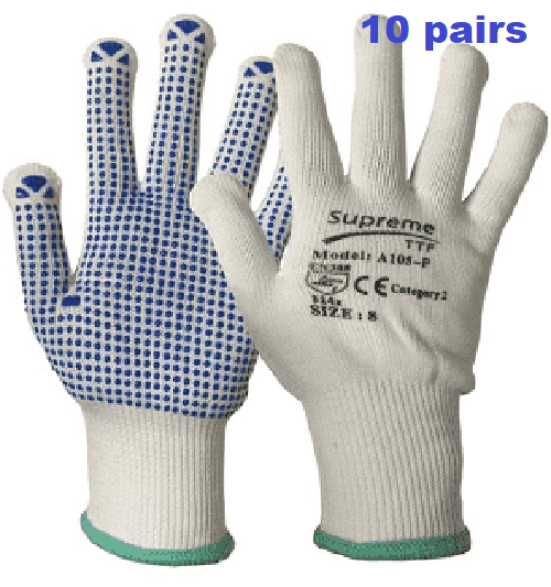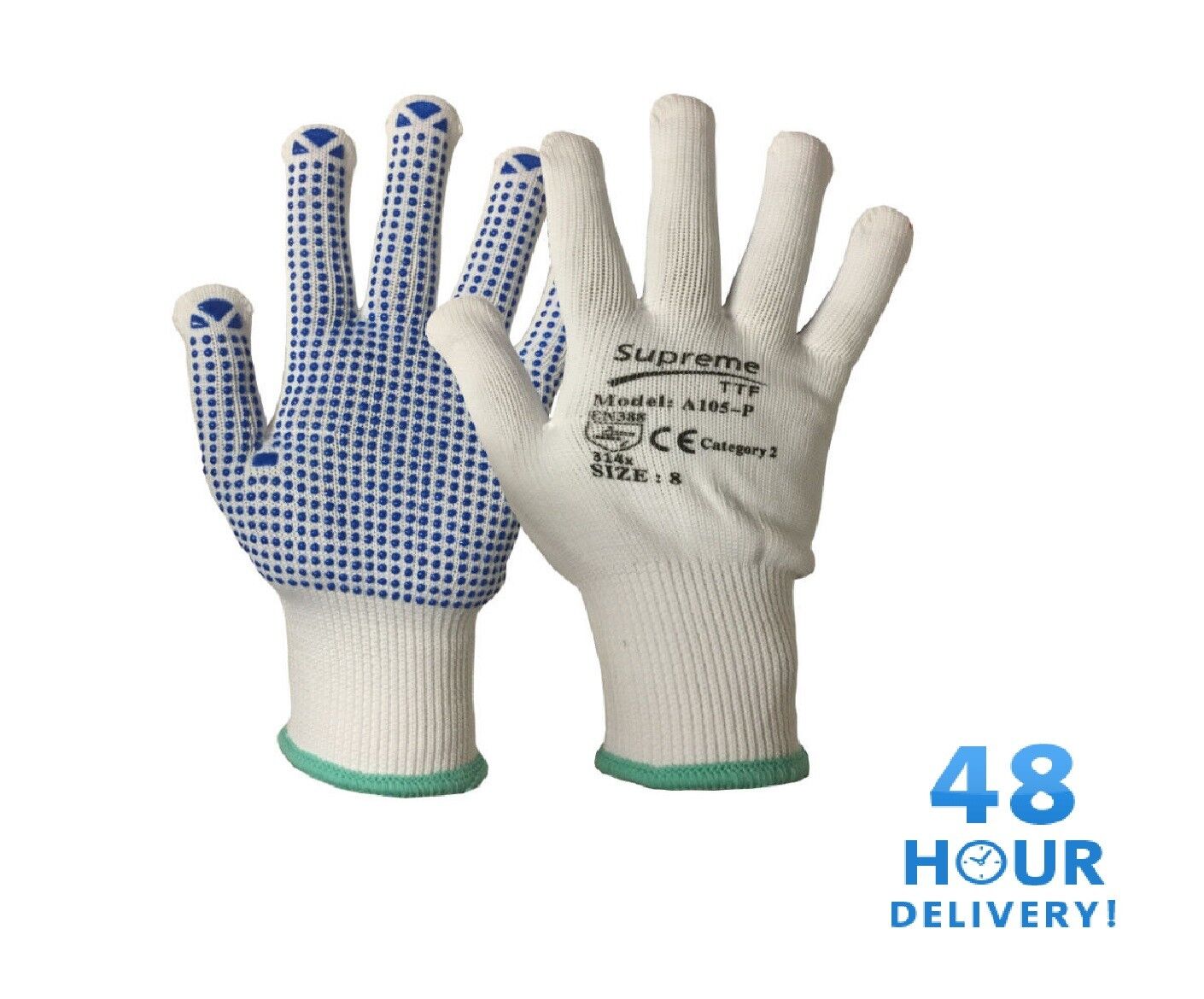 A useful and versatile general purpose dotted Nylon glove with a knitted wrist for added user comfort. Close fitting design offers high levels of dexterity for precise and delicate tasks. PVC dotting on the front of the gloves provides improved dry grip and abrasion resistance. Durable construction and design gives gloves a long lifetime for increased economy