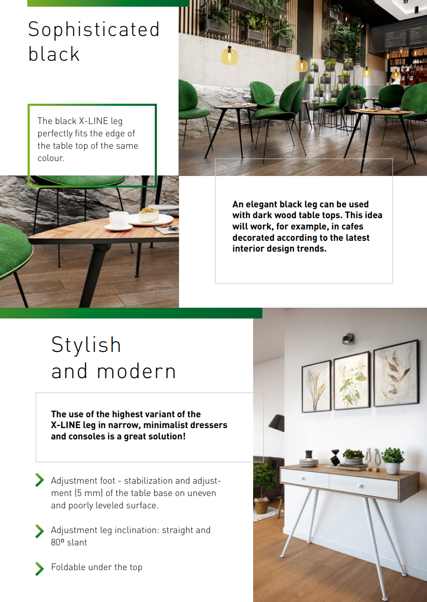 Elevate your furniture with the stylish and versatile NM-X-Line foldable leg. Designed to be attached to various tables, coffee tables, or desks, it offers flexibility and stability for your furniture arrangements.