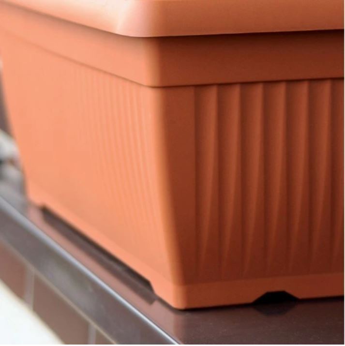 Terra DTT flowerpot made of high-quality plastic,Rectangular shape and delicate embossing make it a perfect decoration for terraces or balconies, both larger and smaller.