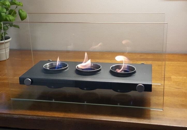 Give the room a cosy atmosphere. Nothing will be more effective than a fireplace with real flames. In addition, our fireplace is a real designer hit. The fireplace is free-standing and it can be placed in any room. This fireplace has 3 round burners each takes 100ml of bioethanol fuel.