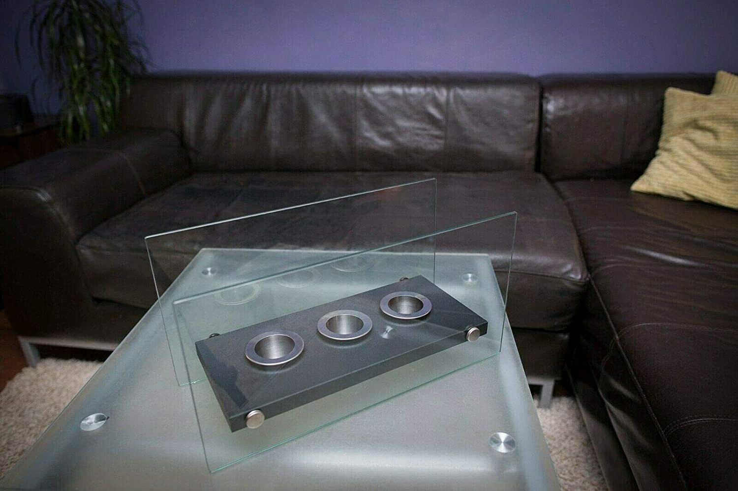 Bio Ethanol Fireplace Glass Burner Fire Rectangular Bioethanol VIC3 Black