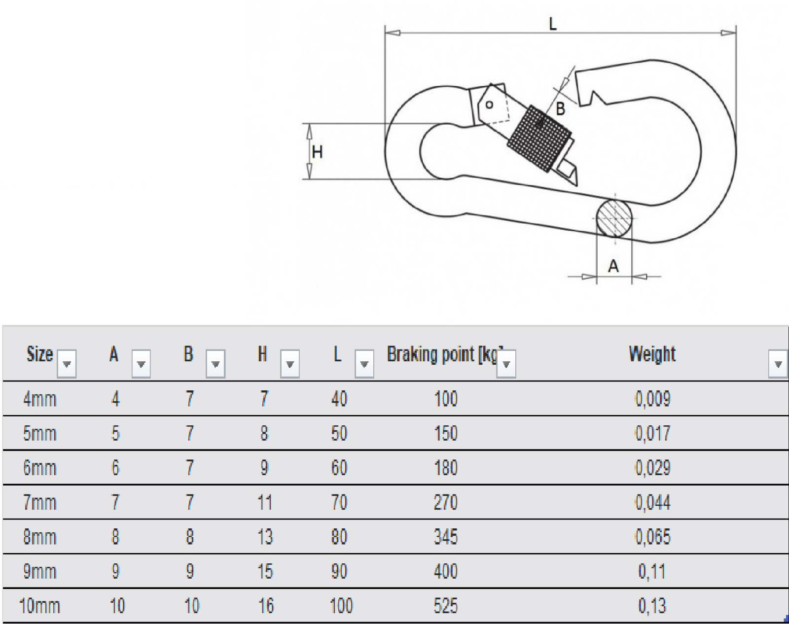 | No. of clips | 1 Carabina, 2 Carabiners, 4 Carabiners, 6 Carabiners, 10 Carabiners |