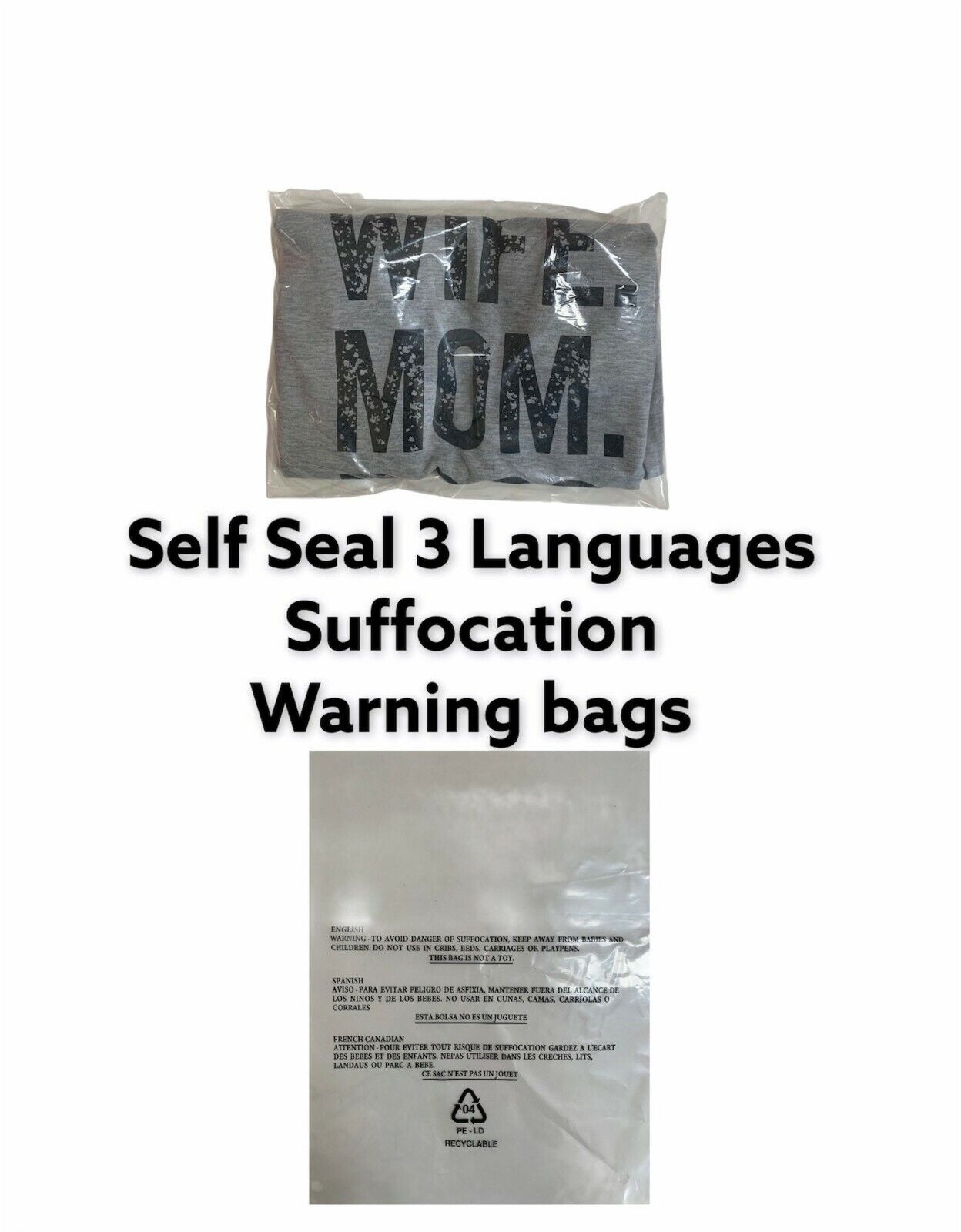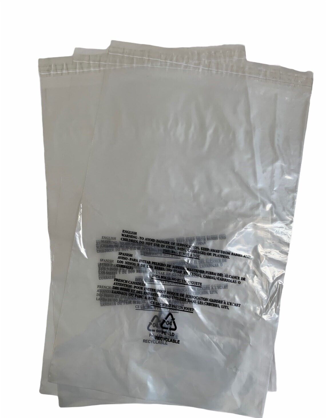 Each bag has suffocation warnings in 5 languages.