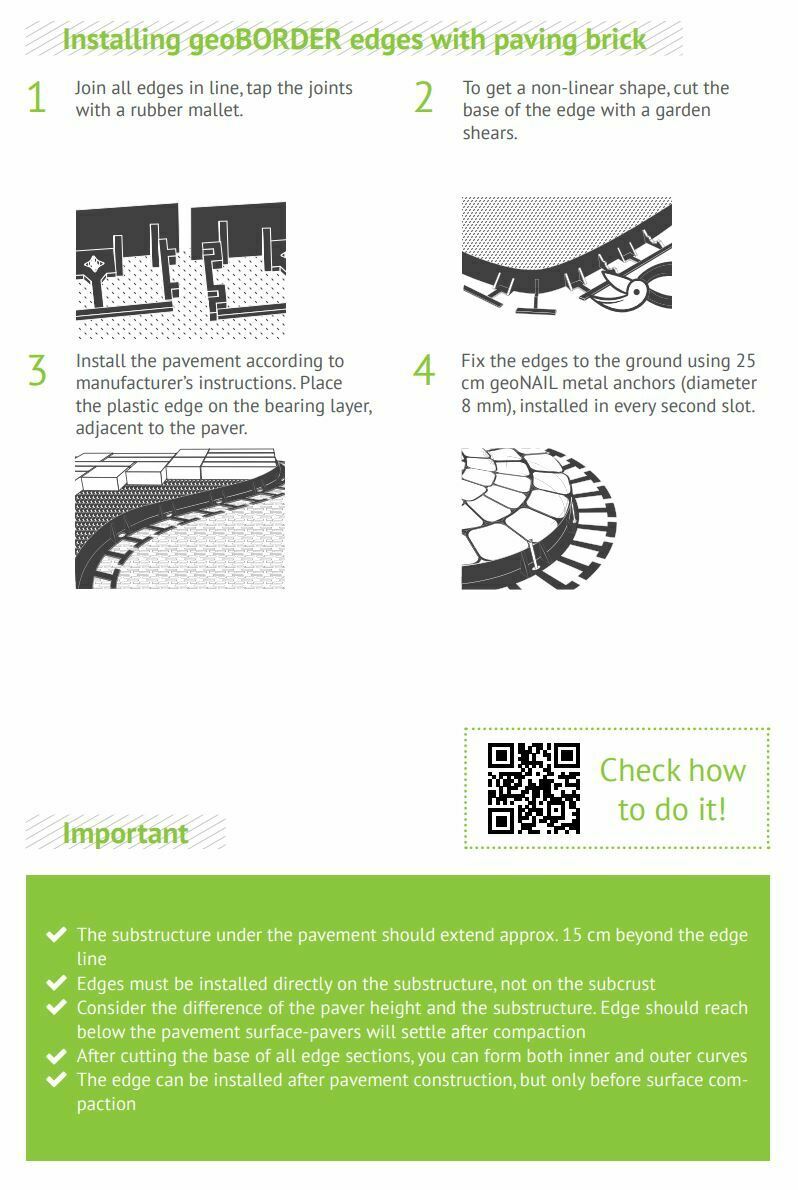 FREE PEGS per 1m Length Edges are used for all types of surfaces: paving, field stone, pavement tiles-clinker, pavement, gravel, stone, barksand and many more.