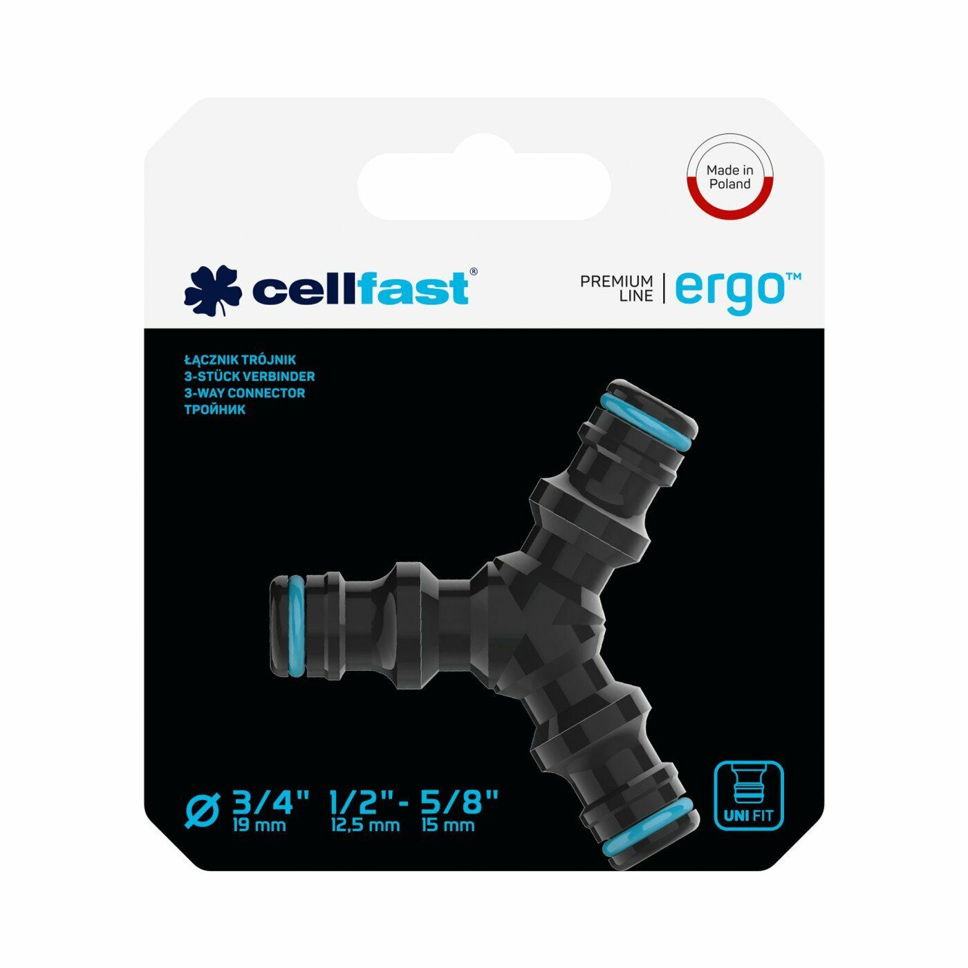- for a temporary connection (branching) of three ends of hoses equipped with 1/2” or 3/4” hose quick connectors