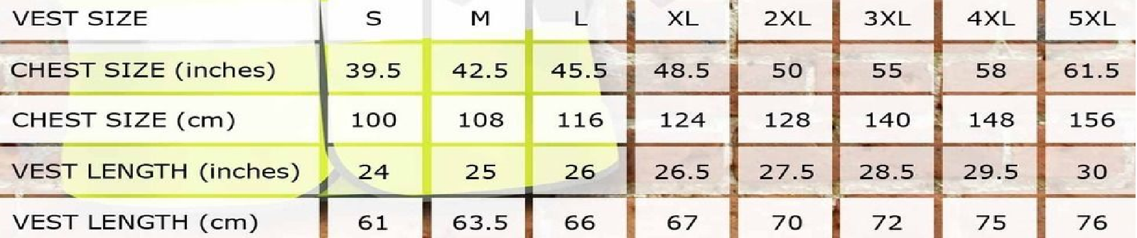 | Vest Size | S, M, L, XL, XXL, 3XL, 4XL |