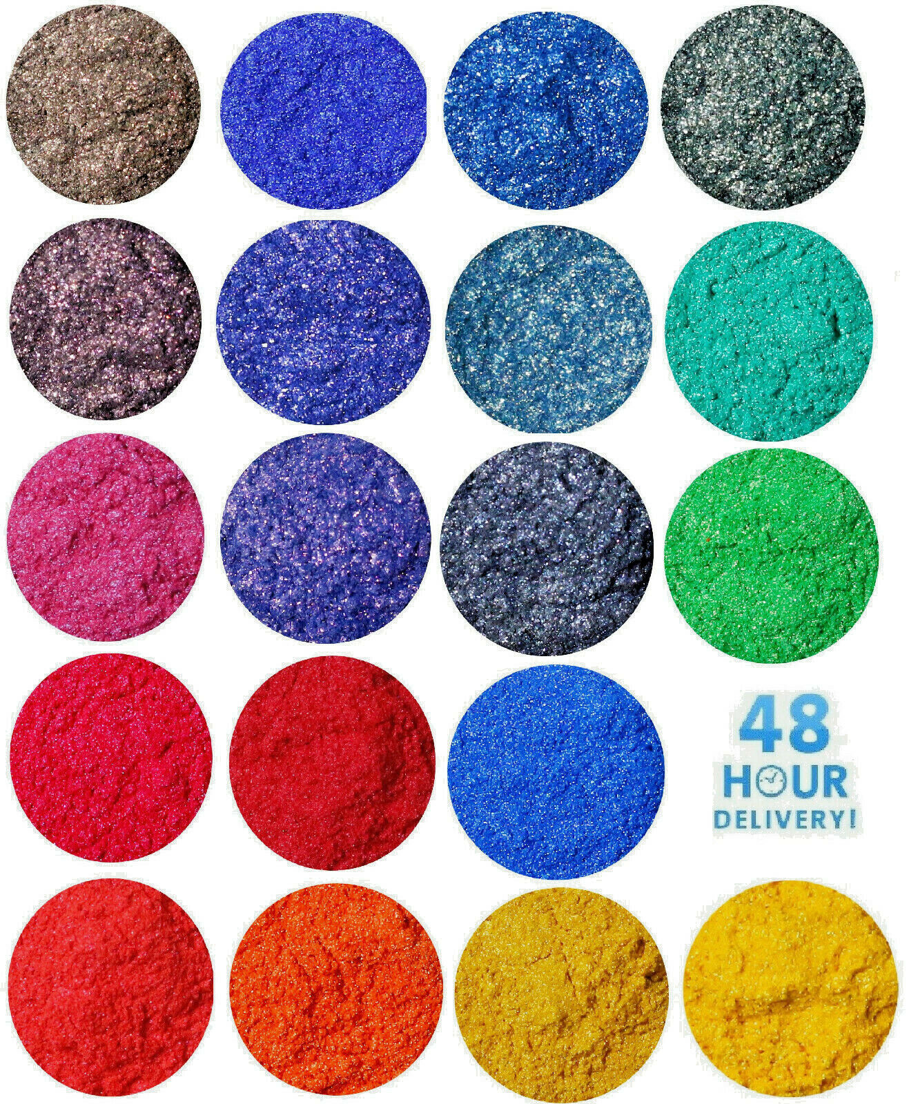 Pigment Powder Luxury Premium Grade Metallic Mica ColourantThese mica powders are a great way to create fantastic an unique designs with vibrant colors and creating a two tone color effectThis mica powder can be used in:*Epoxy Resin Art*Soap making*Bath Bomb making*Slime making*Other Arts and Crafts*Cosmetic making such as eyeshadow*Nail Art additive*Graphic arts*CoastingOur Mica Two Tone series is a great range of pearl colors which have one main color and when looked at from different angles or under a different light a second undertone color would appear. This is the special effect of this pigment.You can choose from 17 different colors and all of these come in different quantities and packaging choose from:*10g grip seal bag*25g grip seal bag*50g grip seal bag*10g plastic jar*25g plastic jarThe colors this mica powder comes in:Bright Violet, Bright Green, Wine Red, Red Blue, Red Brown, Violet Red, Violet Blue, Green Grey, Green Gold, Apple Green, Grey Blue, Dark Green Gold, Blue Gold, Blue Mauve, Blue Violet, Pure Blue, Blue GreenYou can also opt to choose all 17 colors to save money and chose from set in any of the above packages.