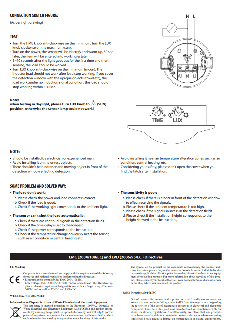 • Motion Detection Range: Dependent on installation height, 1-8 meters (radius adjustable)