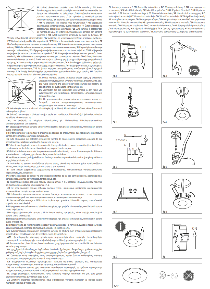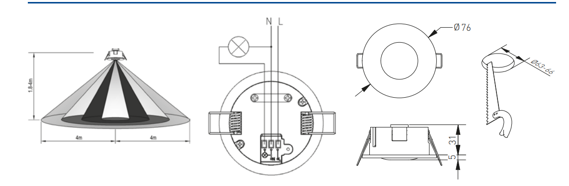 Motion Sensor 360 Degree Recessed PIR Occupancy Detector Light Switch IP20 LUX