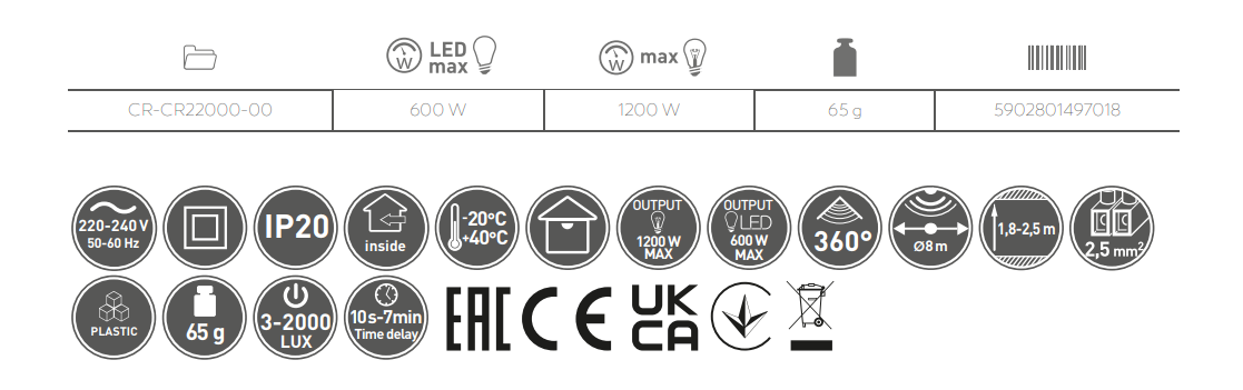 Key features of the CR-22 motion sensor: