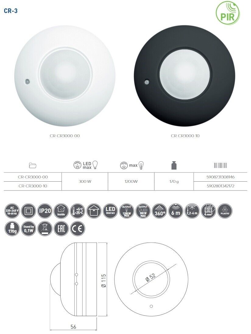 Motion Sensor Presence Detector Infra-Red High Sensitivity LUX Recessed 360 PIR
