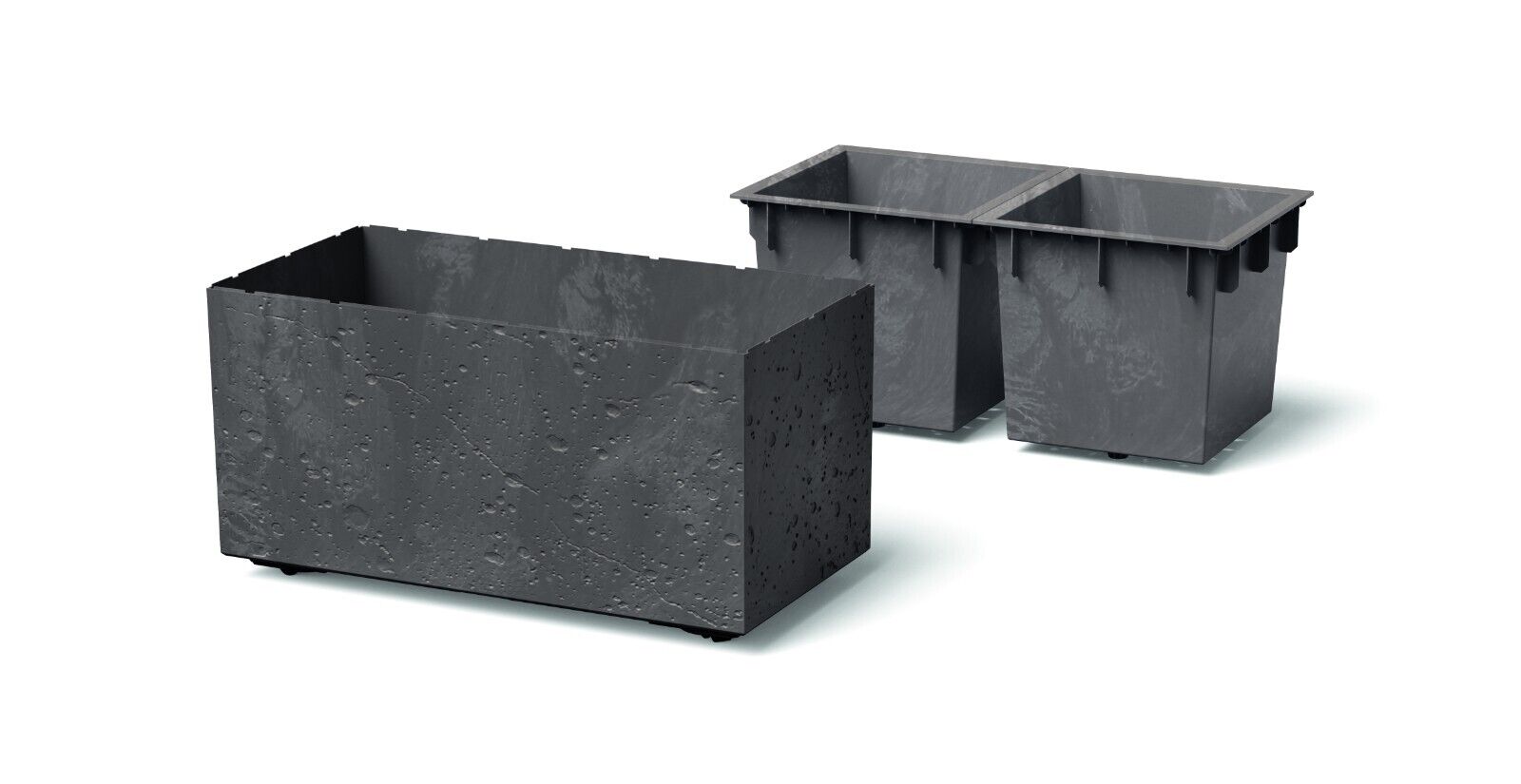 Sierra Case Beton Effect is a contemporary, rectangular planter with an internal divider that creates two separate compartments. The concrete-like finish gives it an industrial edge, enhancing the aesthetic of any environment. Constructed from high-quality materials, this planter is built to withstand various weather conditions, including rain, sunlight, and frost.