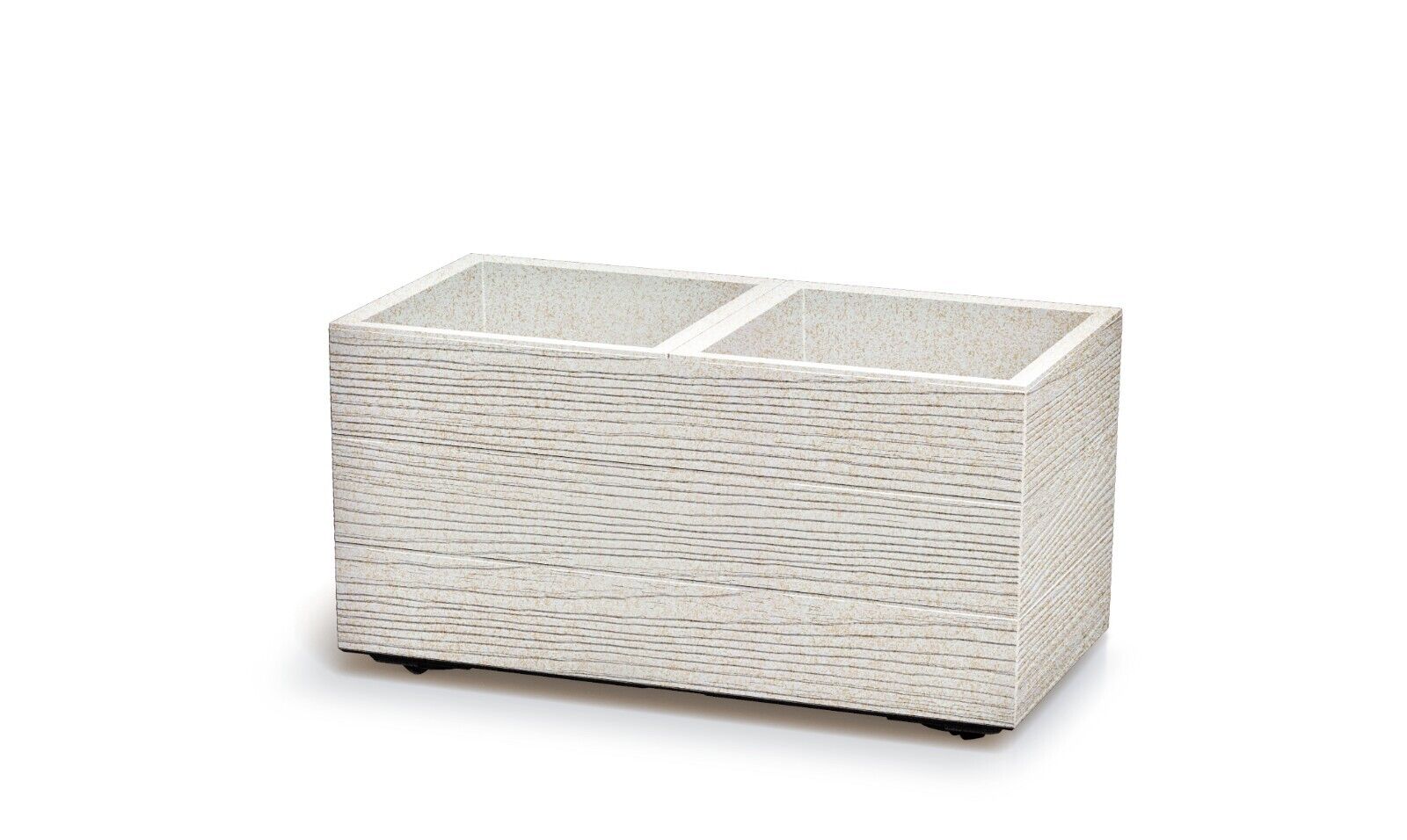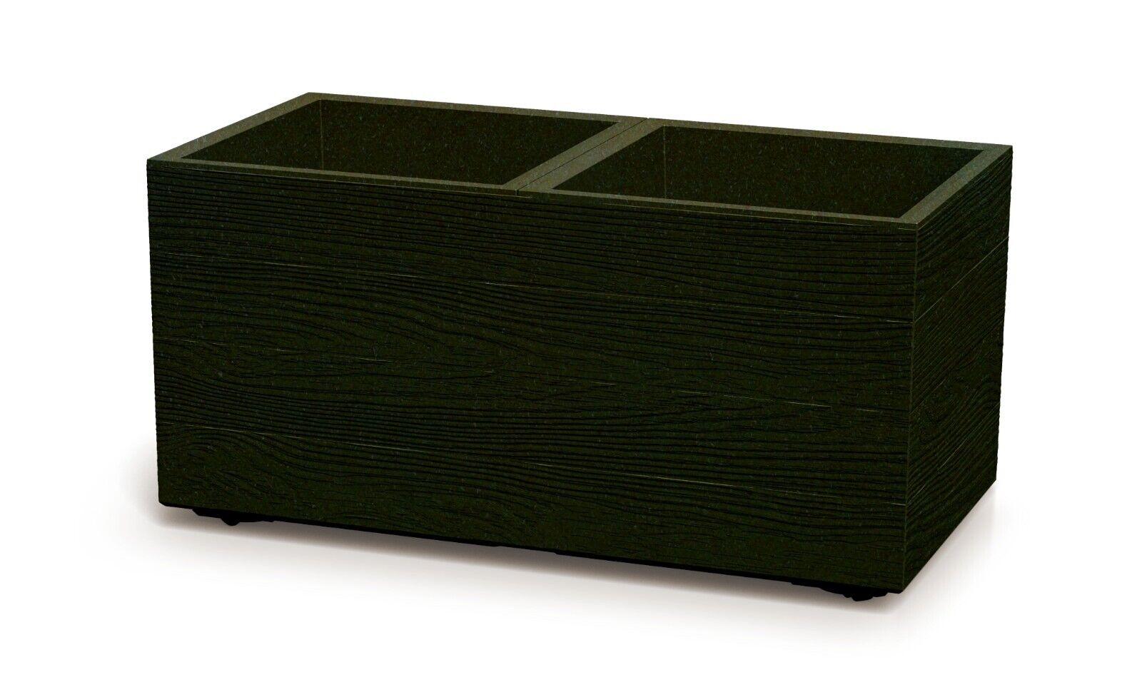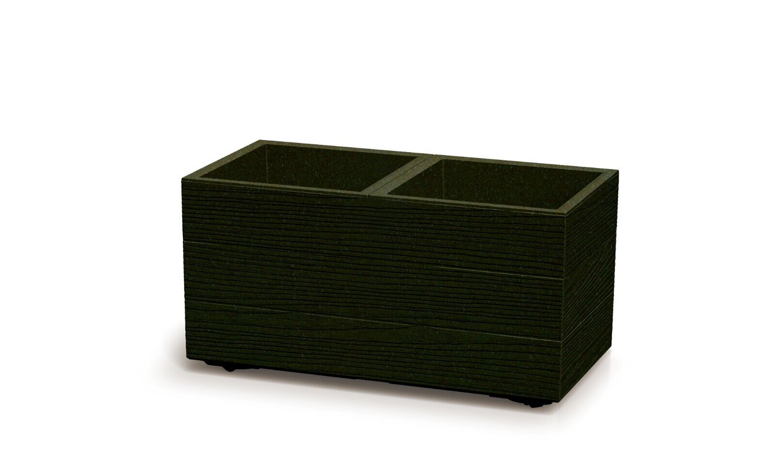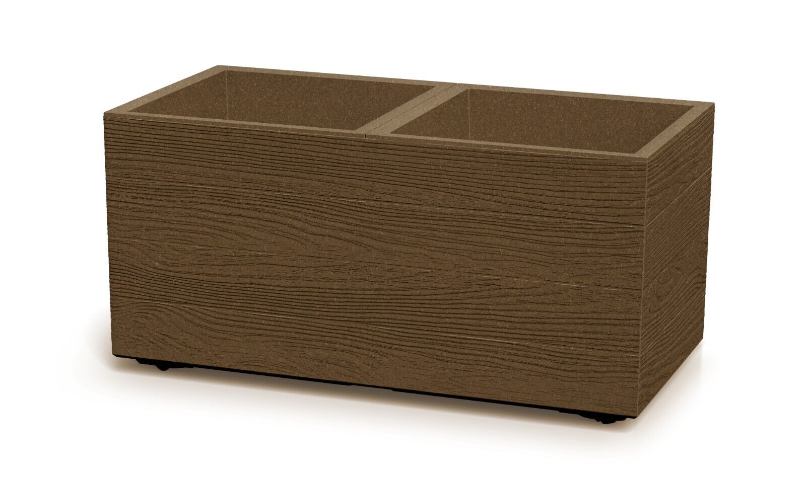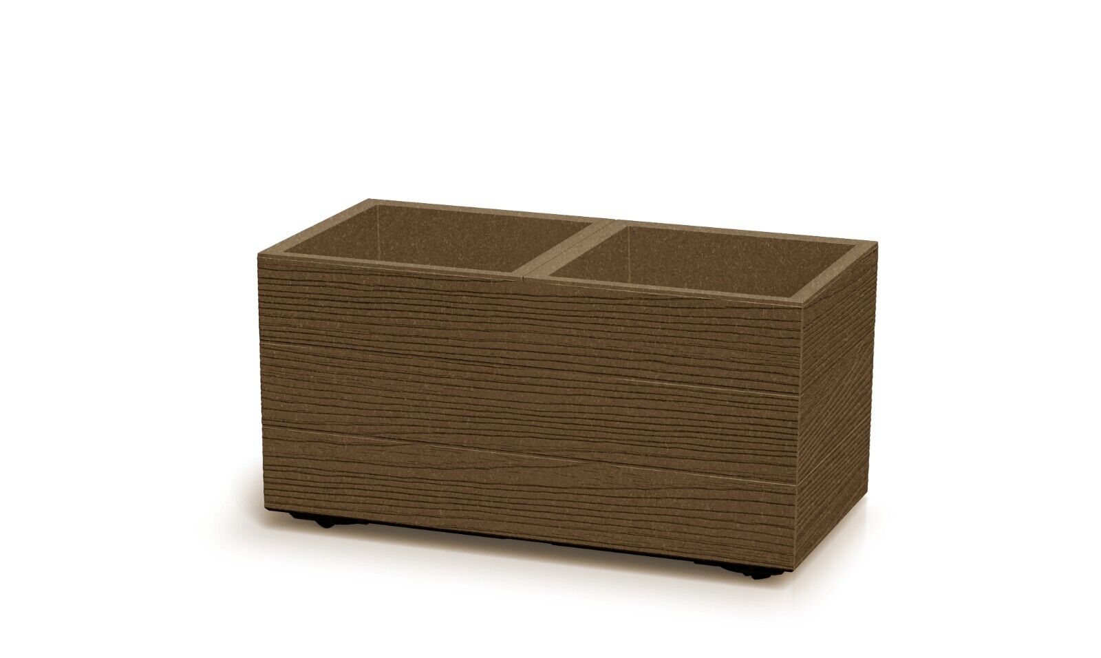 The Madera Case Eco Wood is a contemporary rectangular planter featuring an internal divider that splits the space into two sections. Designed for creating plant arrangements and separating zones on terraces and balconies, it also incorporates a stacking system for added versatility. This planter is perfect for decorating outdoor spaces such as balconies and gardens, as well as indoor areas like restaurants, shops, and offices.