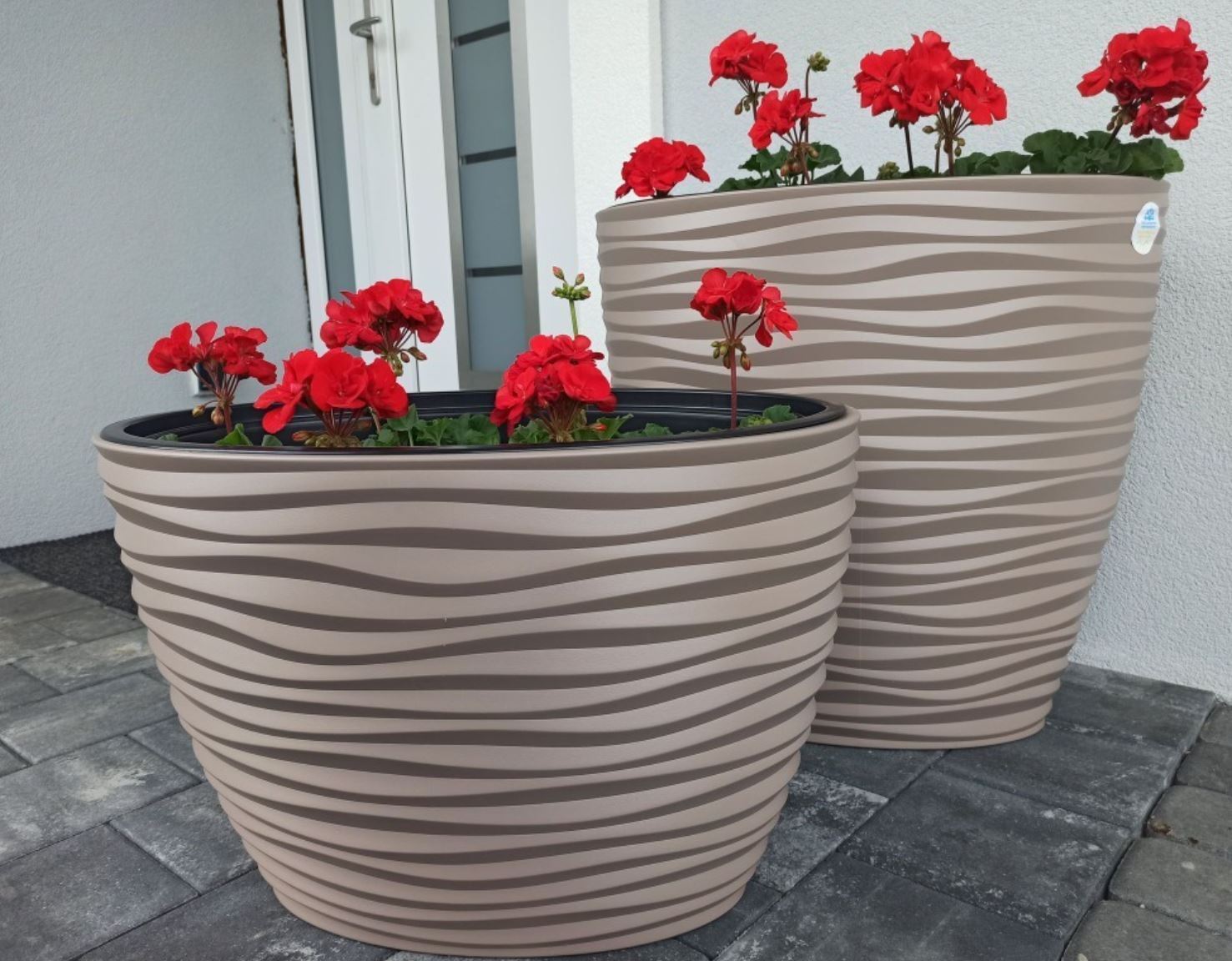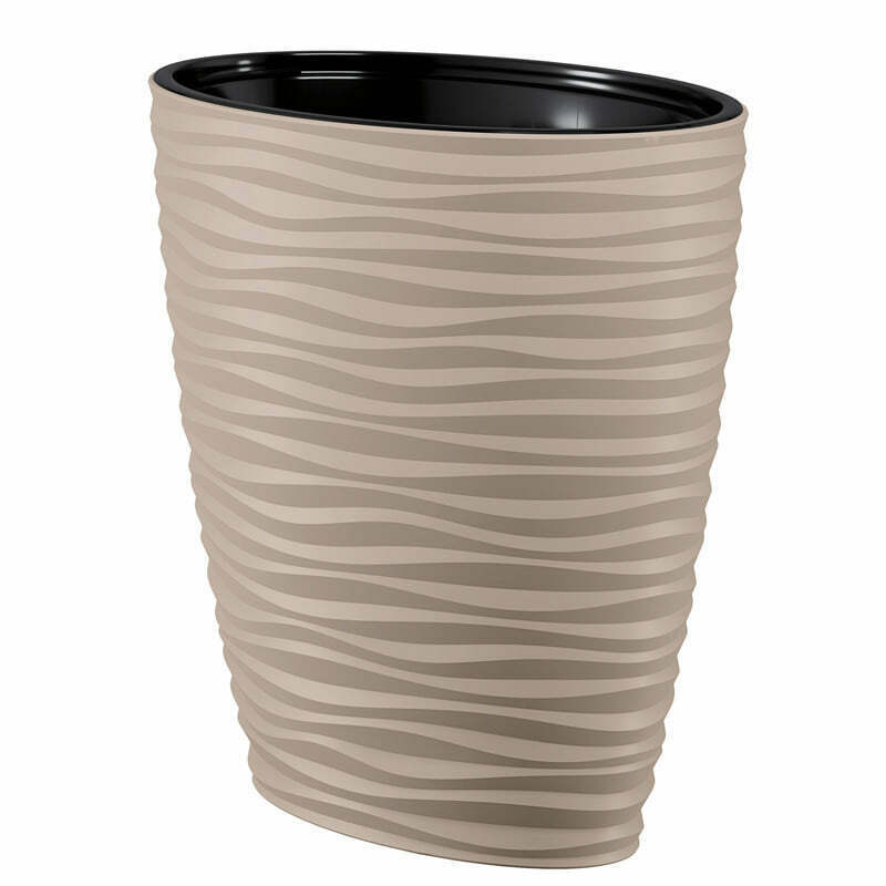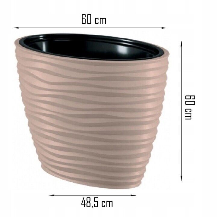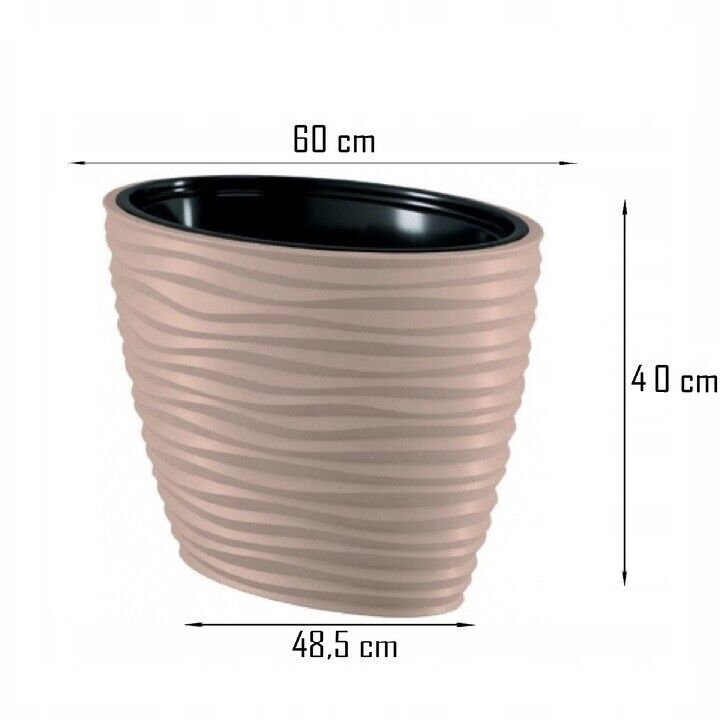 Dunes effect oval ellipse pot has a modern pattern that creates a 3D effect. It is made of durable, frost-resistant material, protects against UV rays and prevents cracks. It is suitable for decorating any room, terrace or garden. The pot has an insert with handles that will facilitate the transfer of the plant.