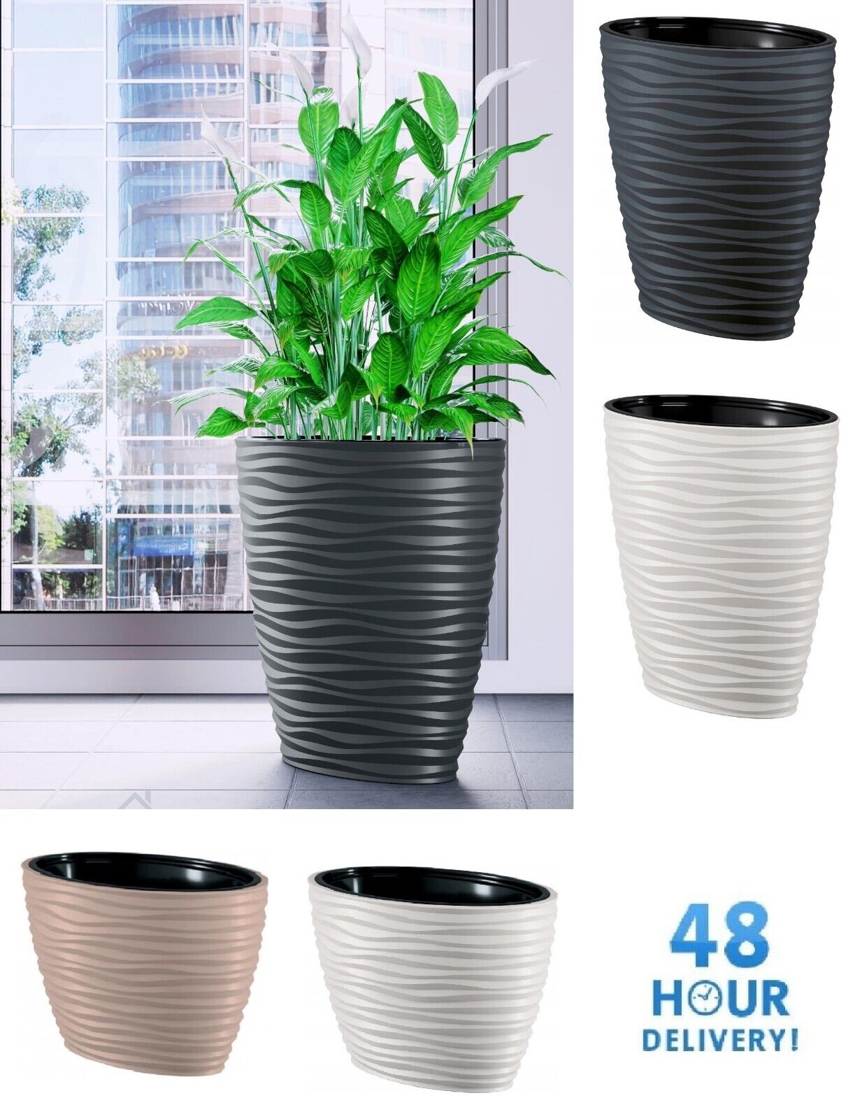 Plant Pot Oval Ellipse Dunes Flower Indoor Garden Patio Planter Large 2 sizes