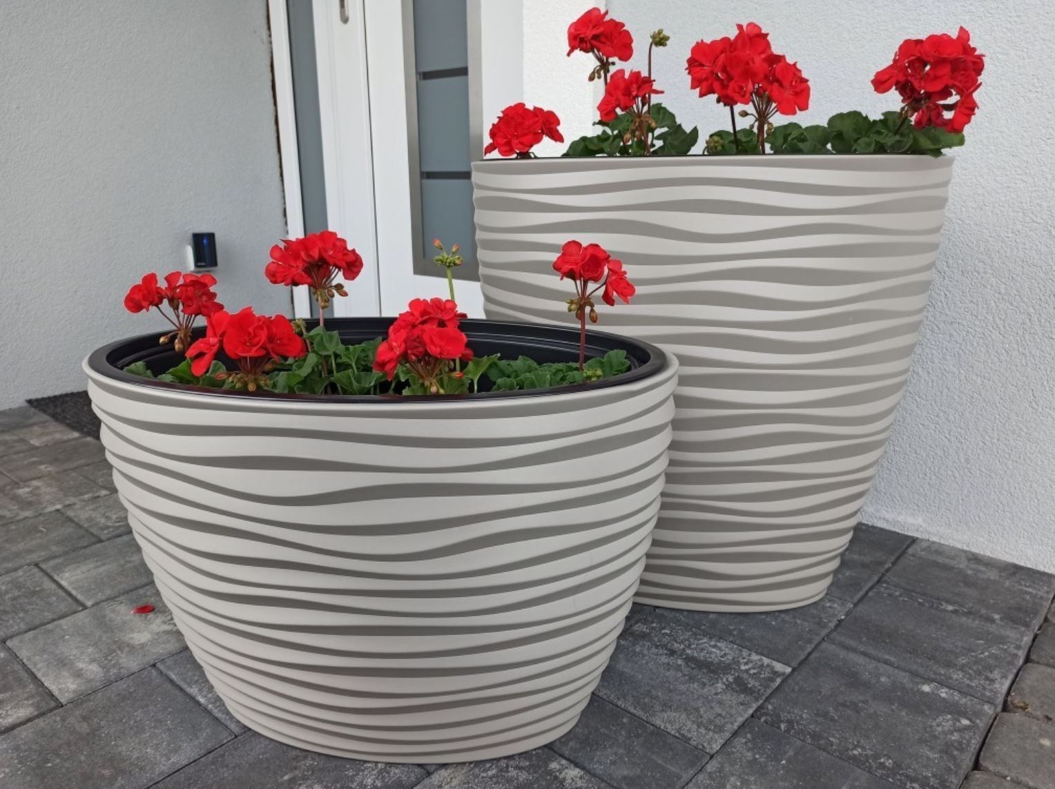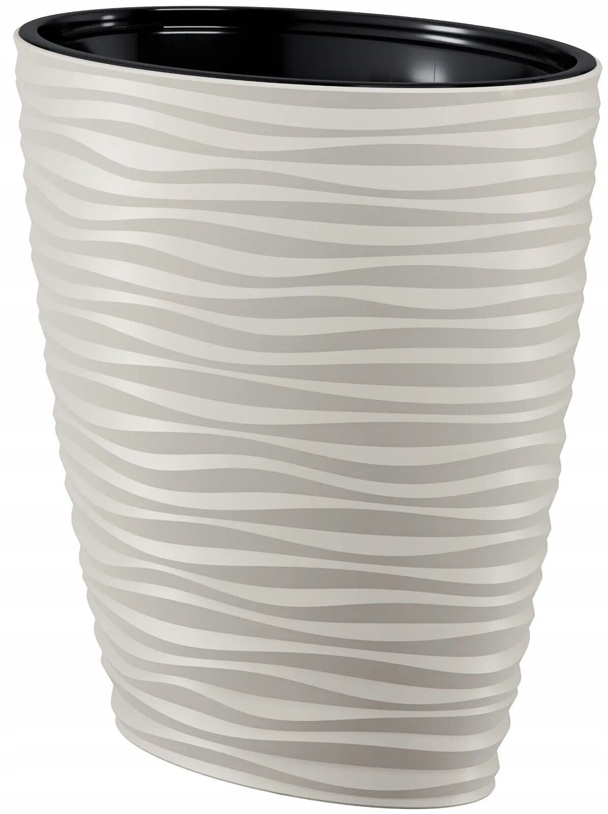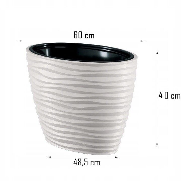 Dunes effect oval ellipse pot has a modern pattern that creates a 3D effect. It is made of durable, frost-resistant material, protects against UV rays and prevents cracks. It is suitable for decorating any room, terrace or garden. The pot has an insert with handles that will facilitate the transfer of the plant.