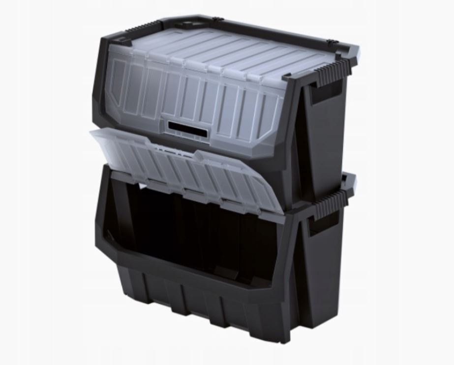 - Lowered front for convenient access to contents without the need to detach stacked containers.