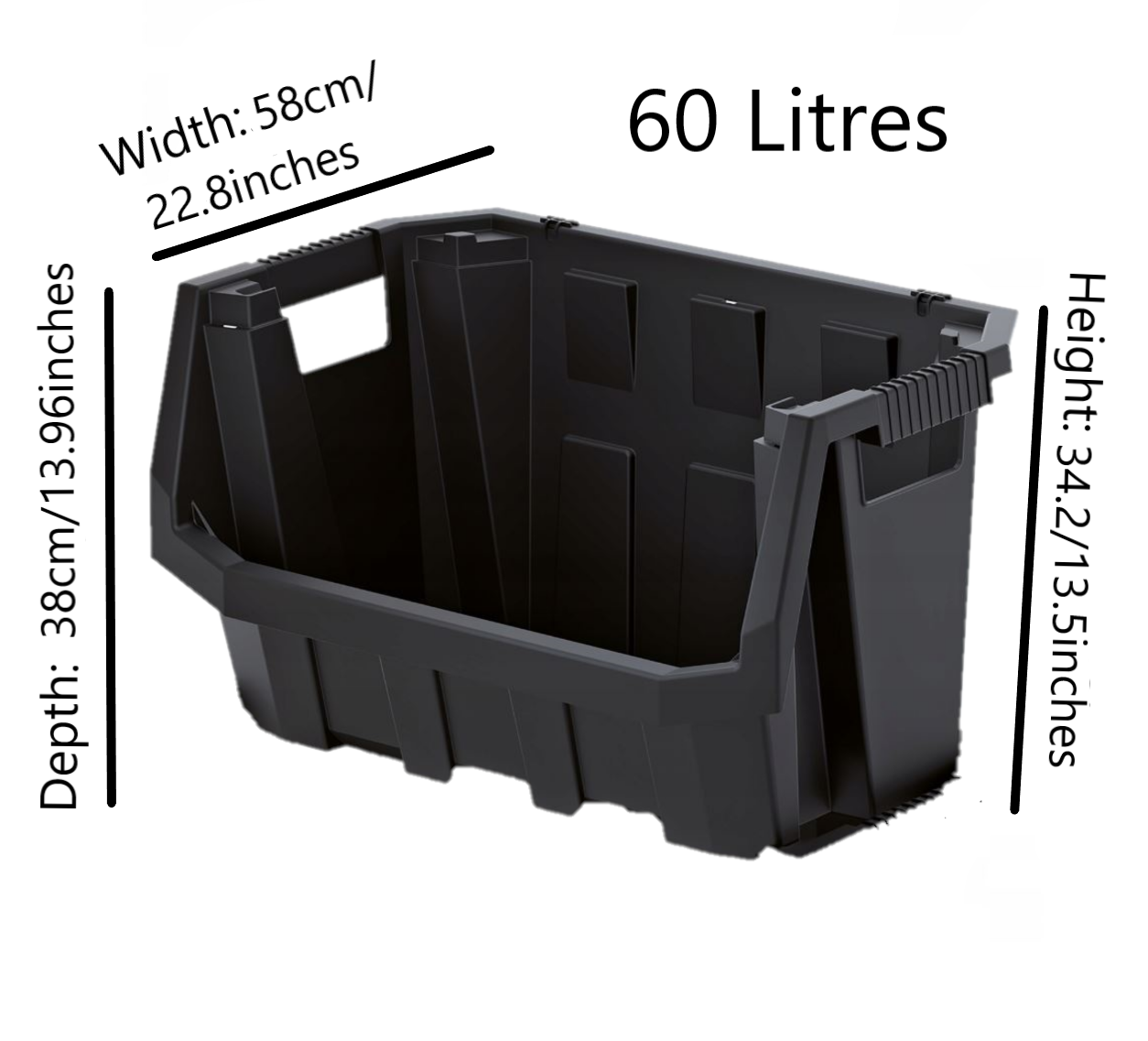 - 60 Litres – Width: 580mm, Depth: 380mm, Height: 342mm