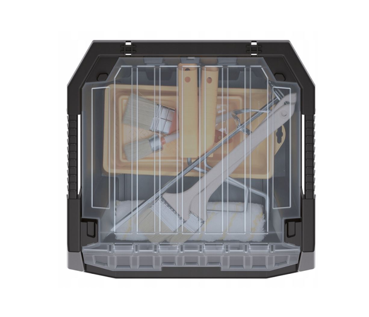 Introducing the TRUCK MAX series of organizer containers, meticulously designed to accommodate large quantities of items. These highly practical products are equipped with two comfortable handles, facilitating easy retrieval from shelves, transportation, and stacking.
