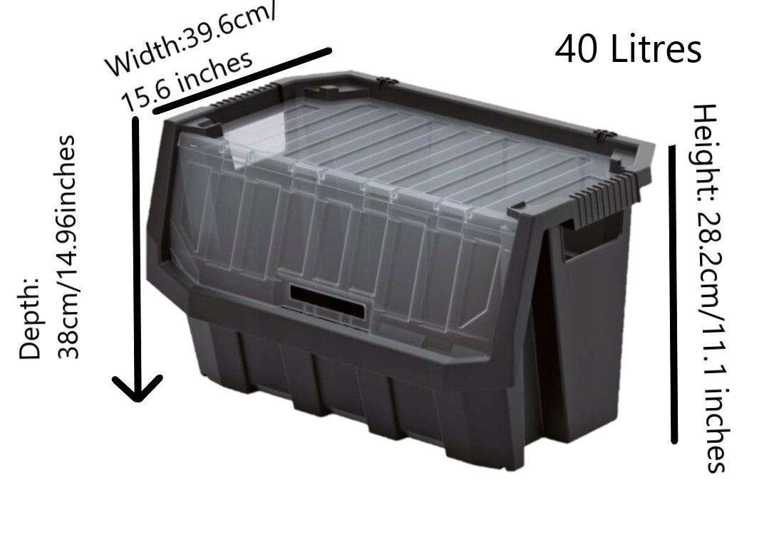 - 40 Litres – Width: 396mm, Depth: 380mm, Height: 282mm