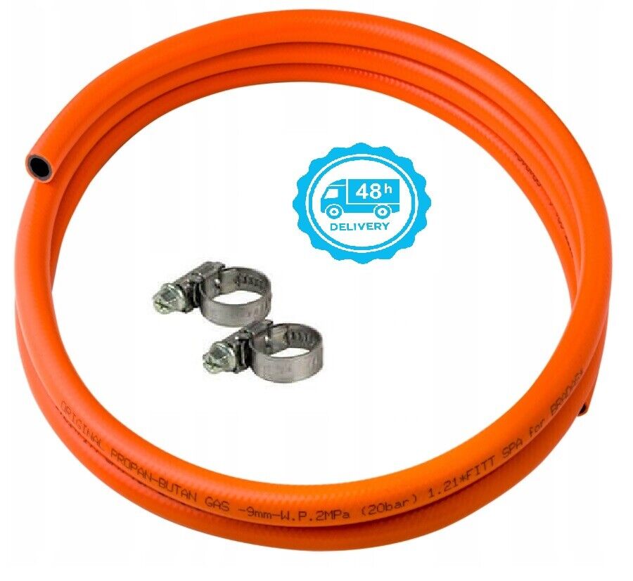 Propane Butane Gas Hose Pipe LPG Camping Caravan BBQ Gas Bottle 9mm + 2 CLIPS