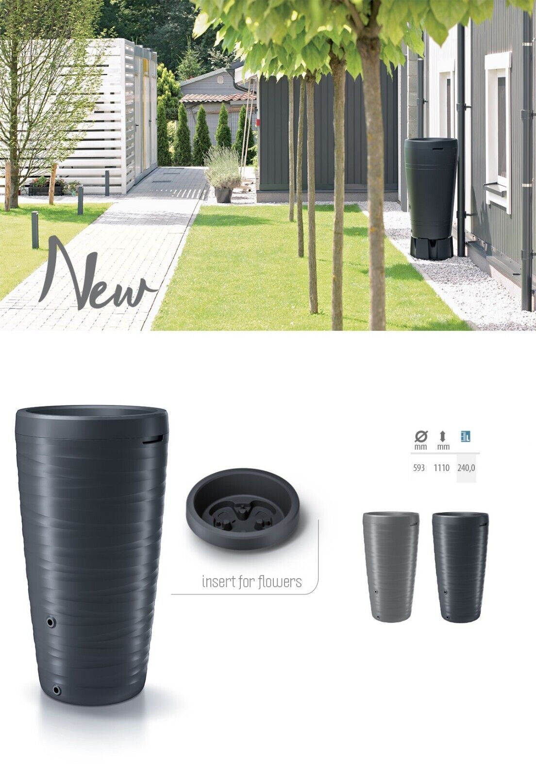The capacity of 240 liters allows you to store a large amount of utility water. It is used for watering gardens or ornamental plants. The upper opening (fixed with a lid) and the place for connecting gardening equipment allow for free work.
