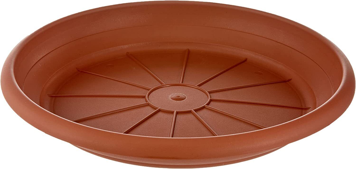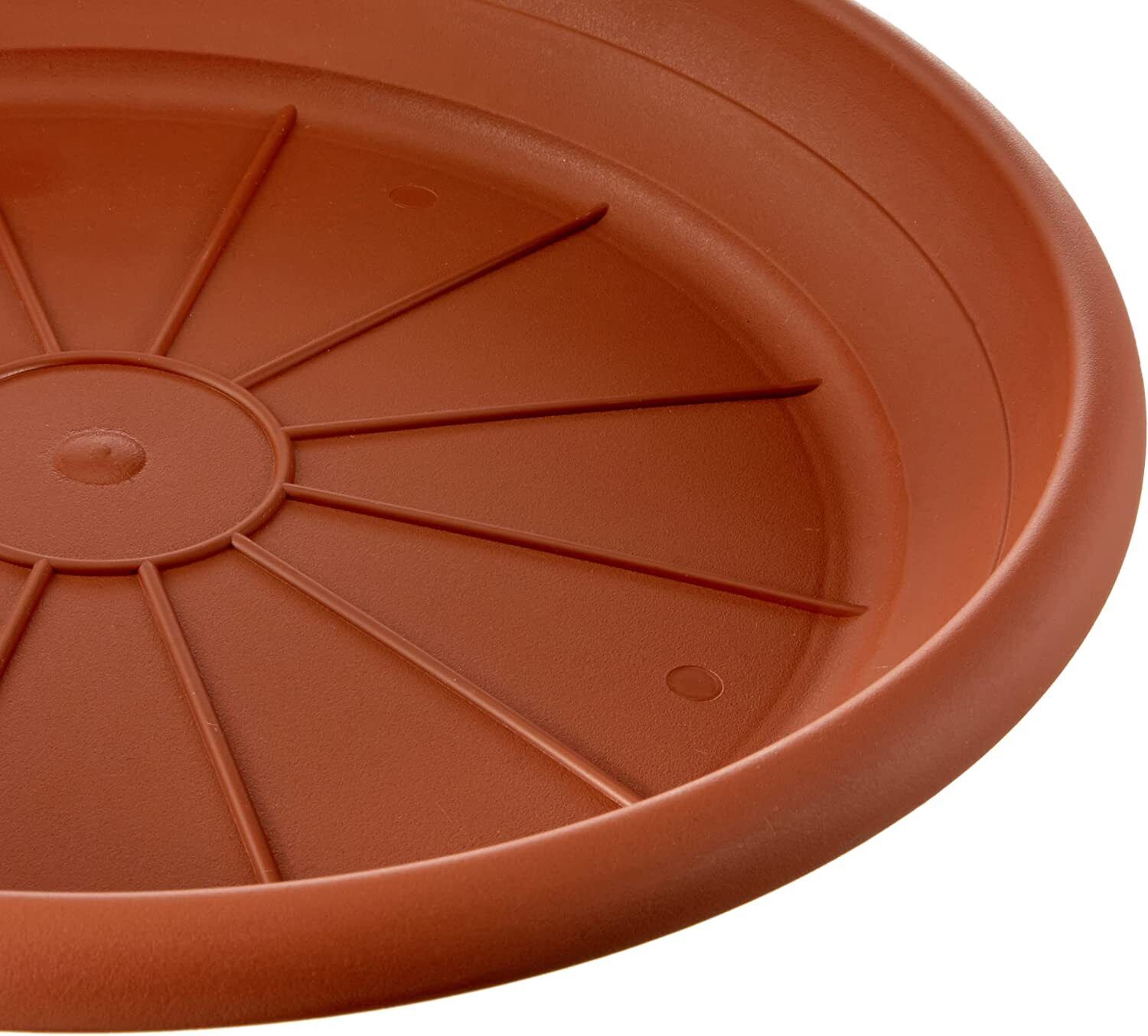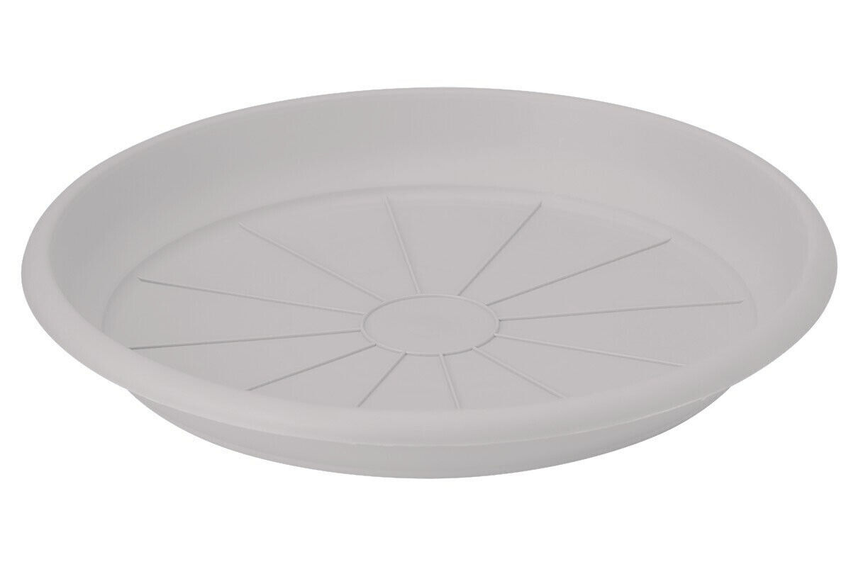 Plastic plant pot saucer sizes from 8cm to 46cm available in 3 colours Anthracite, Terracotta and White.