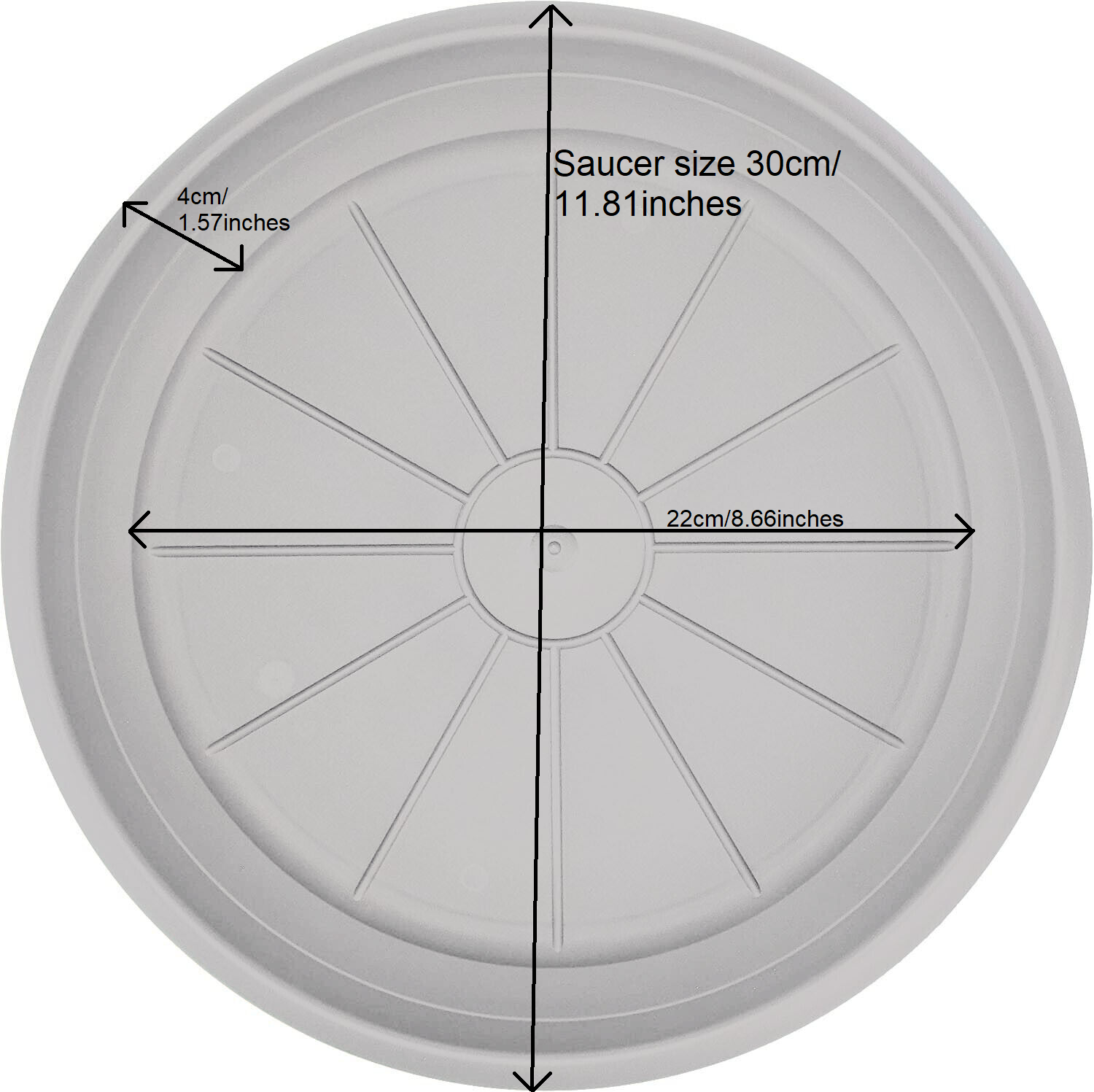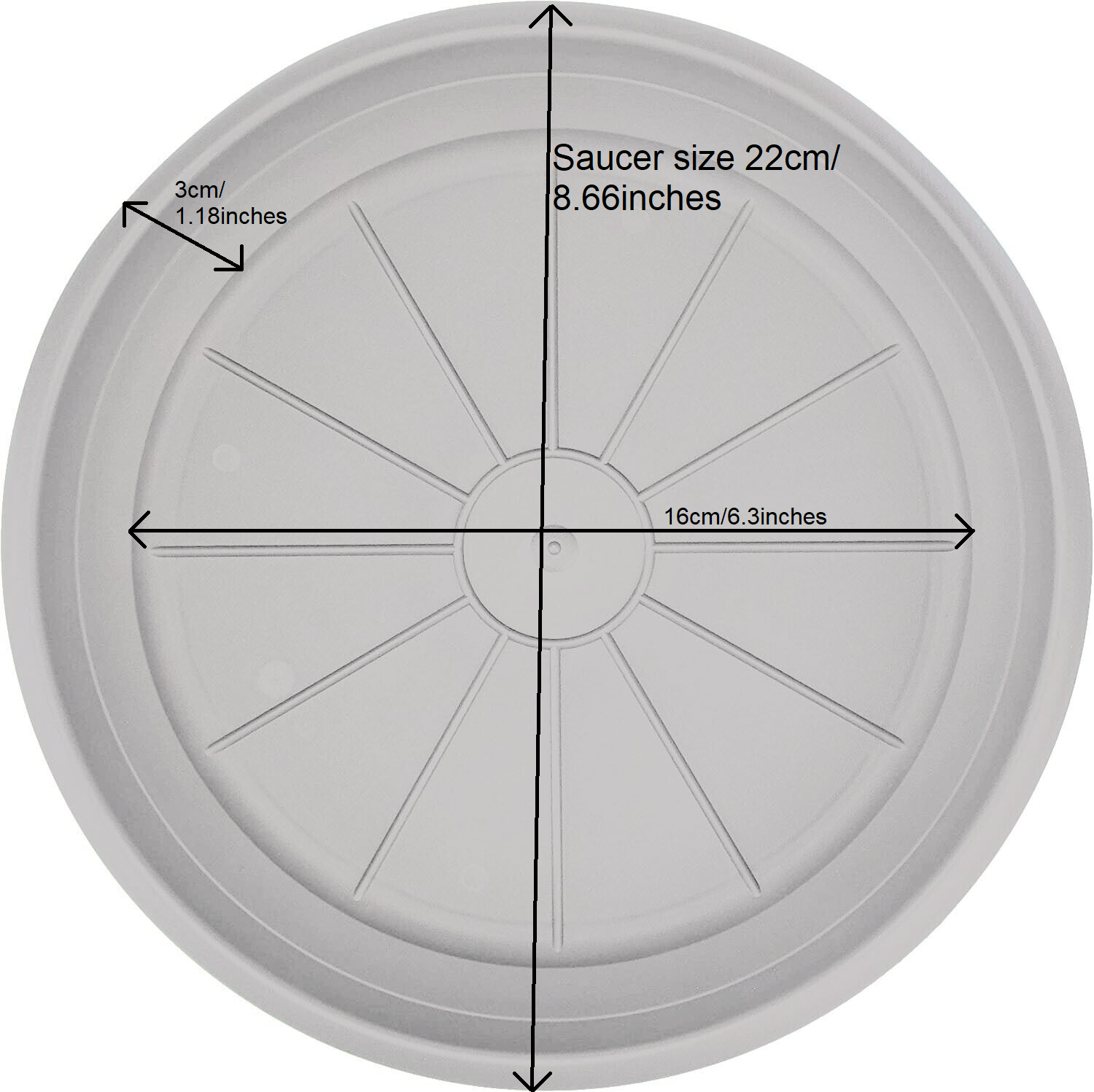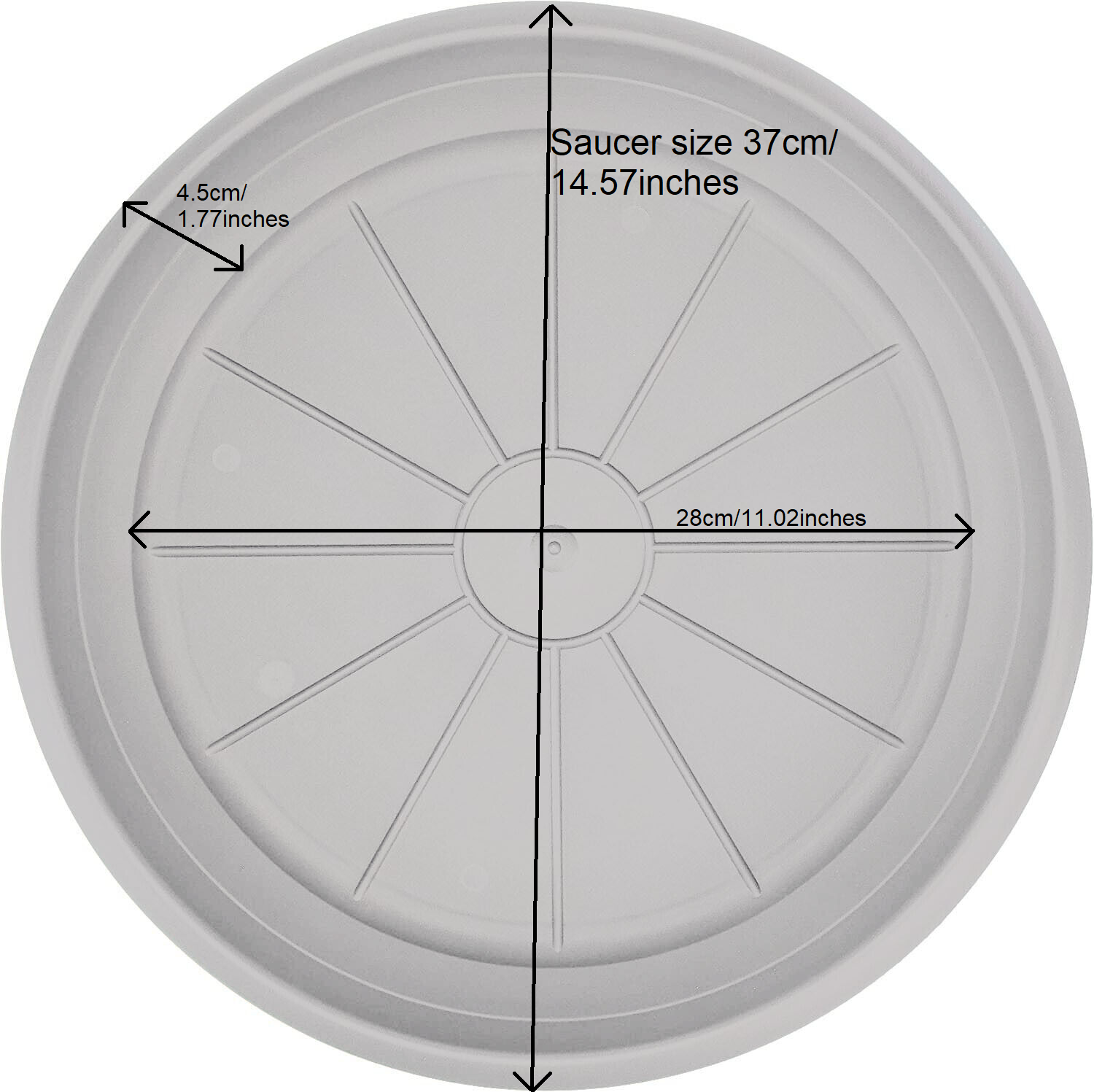 Plastic plant pot saucer sizes from 8cm to 46cm available in 3 colours Anthracite, Terracotta and White.