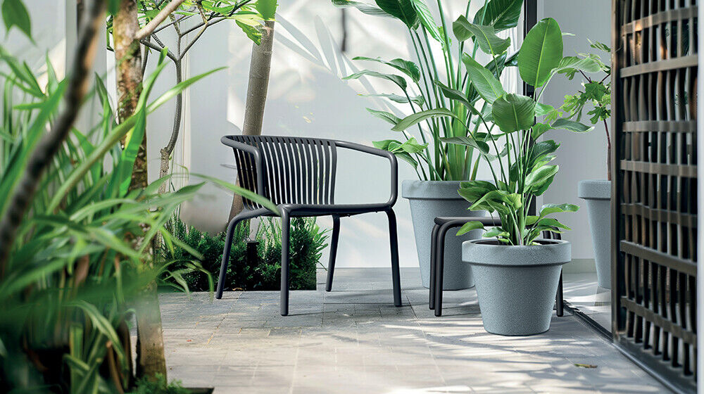 Origina is a classic planter in the shape of an inverted cone with a distinctive embossed rim. Although it looks like heavy stone, it is made from a lightweight, durable material that is resistant to weather conditions and UV radiation. Its simple, timeless design makes it a perfect fit for both gardens and interiors.
