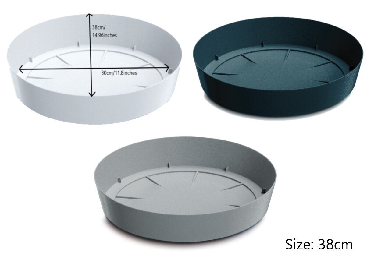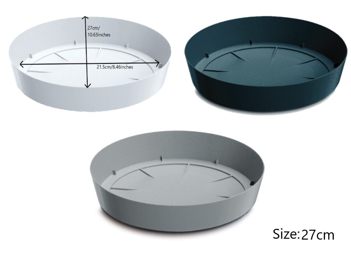 Round Plastic Water Plant Pot Saucer Trays Grey White Anthracite 8 sizes 10-38cm