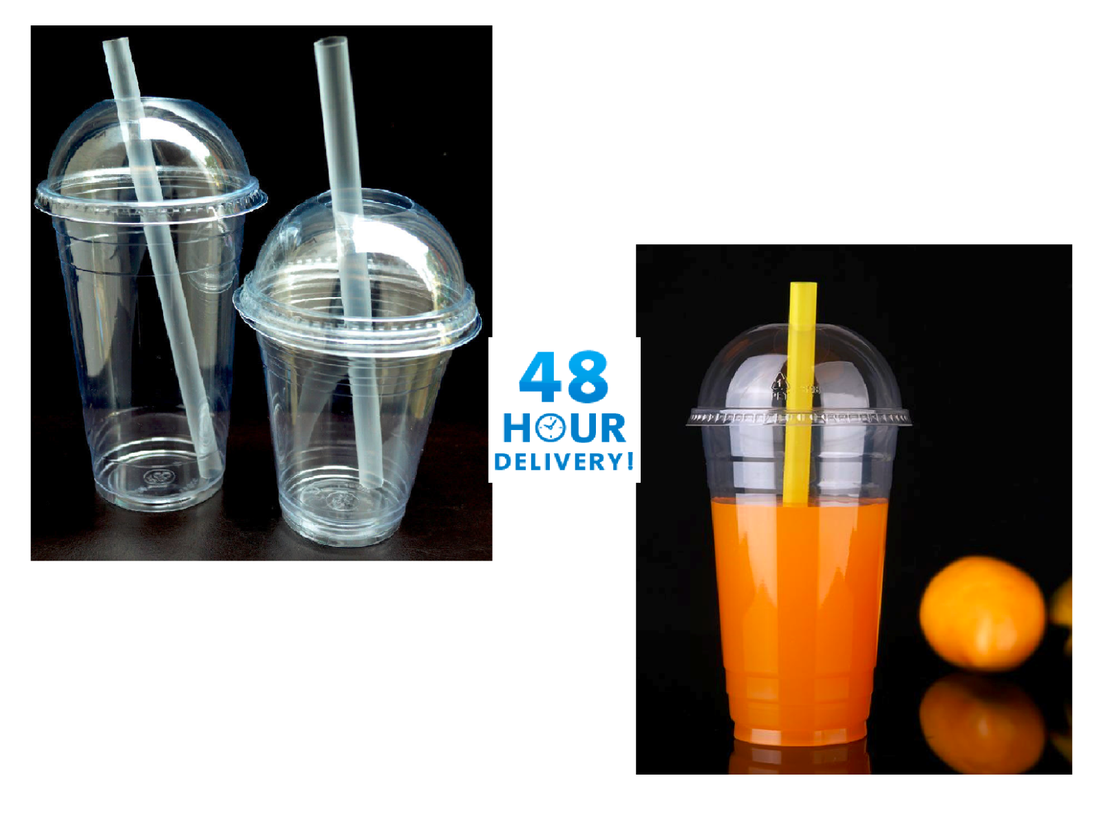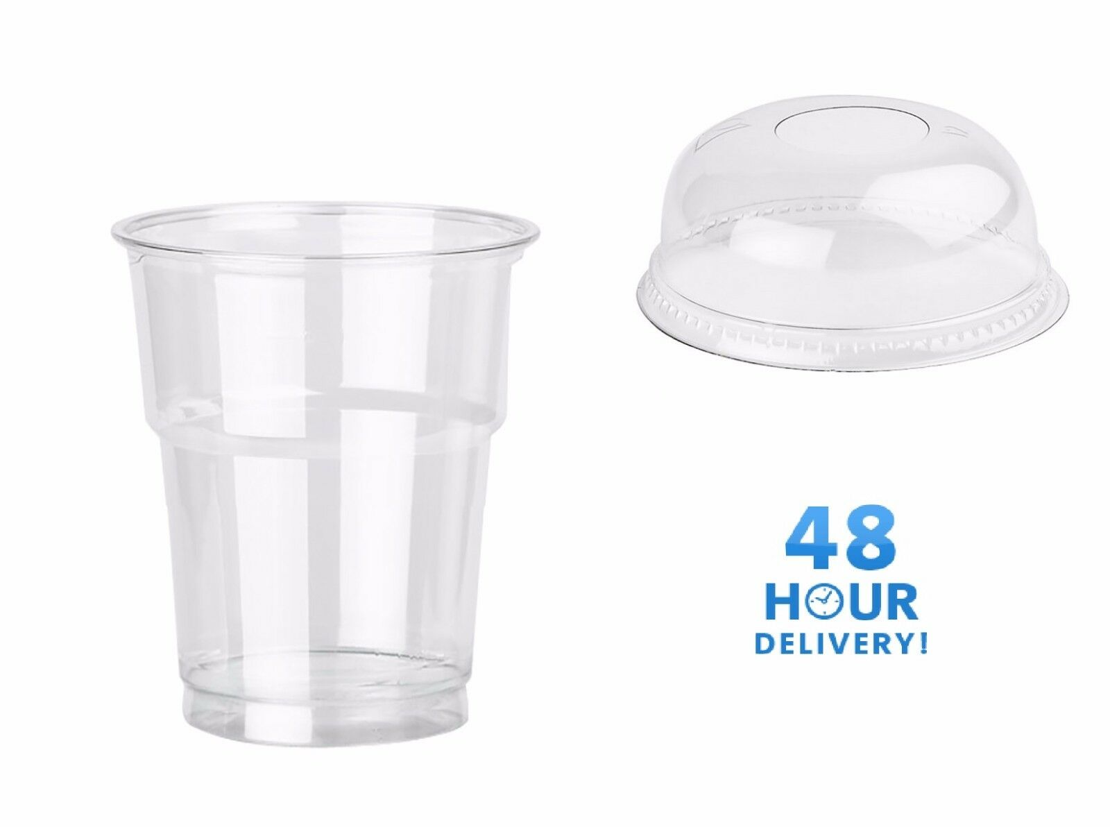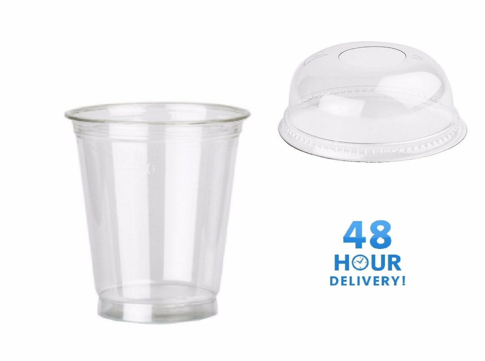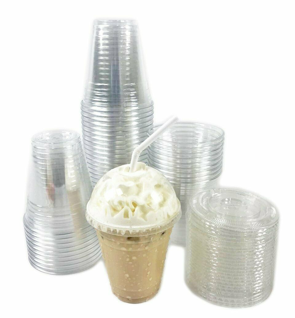 Smoothie Milkshake Cups Lids 10oz 12oz 15oz Clear Plastic Domed Disposable