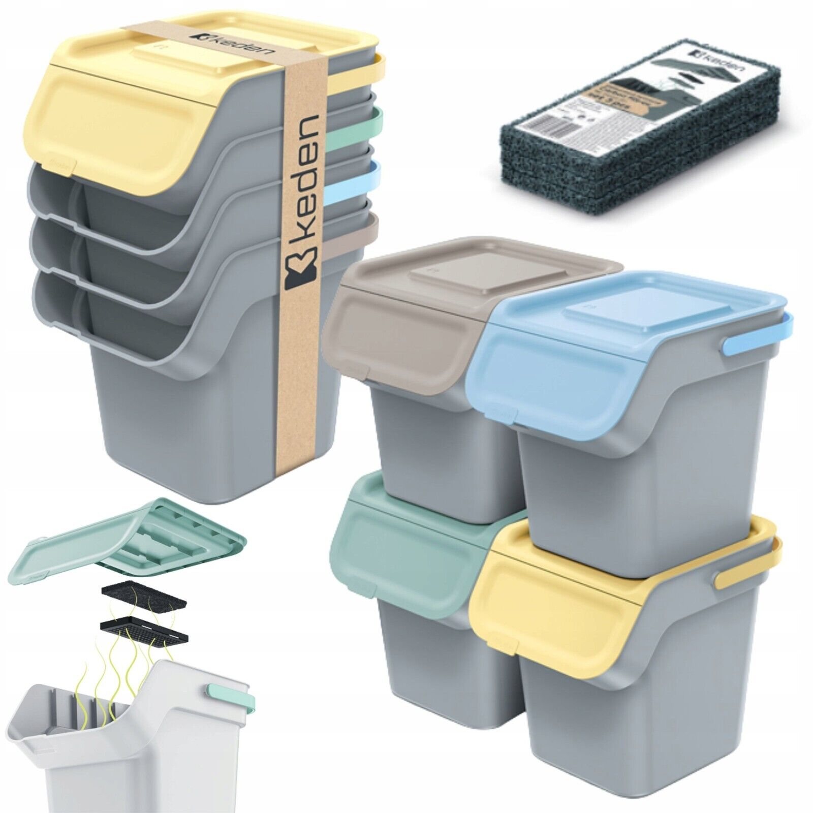 Sorting Waste Bin Recycling Segregation Stackable Lidded Handle +Filter 20L 25L