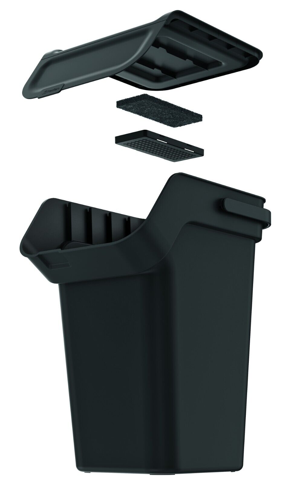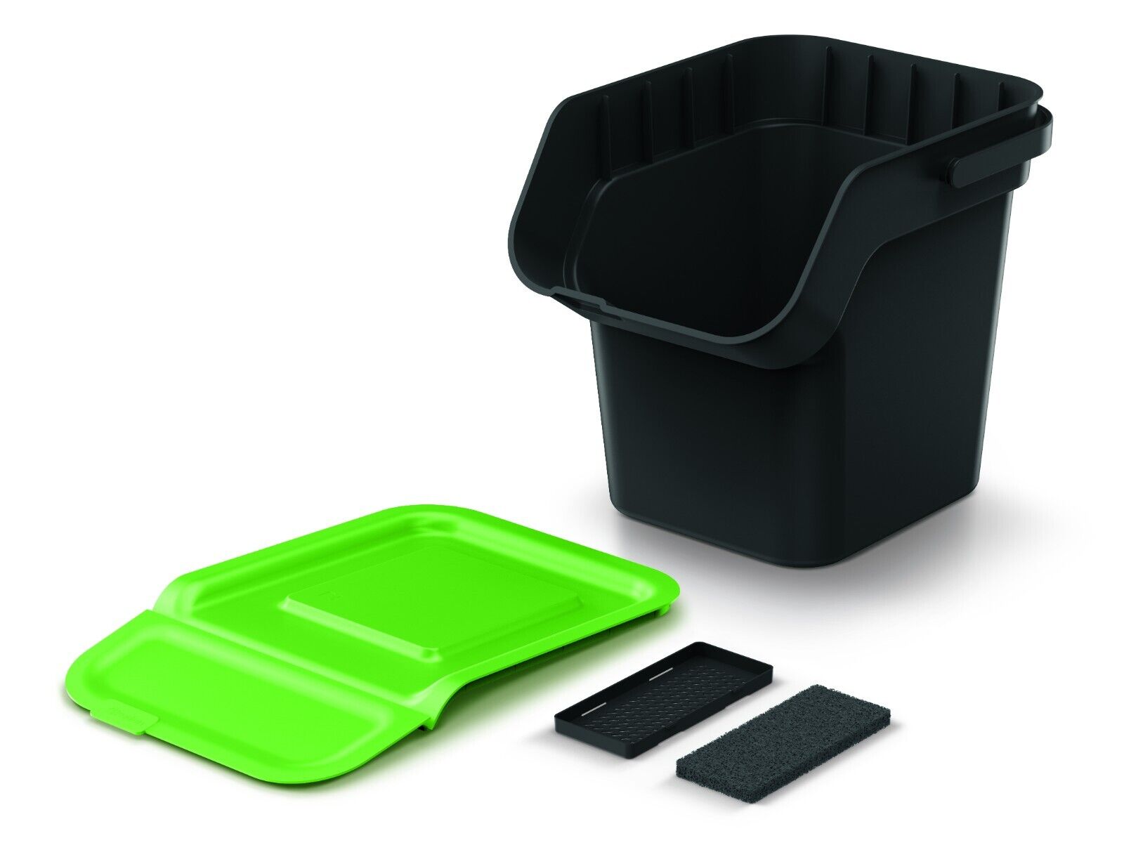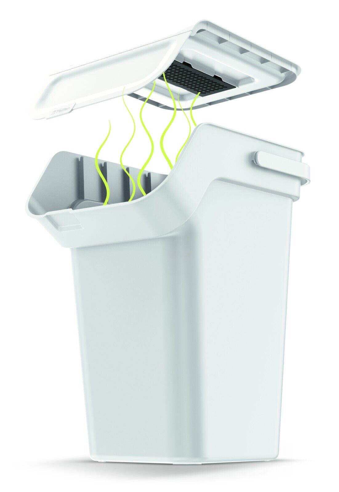 - An active carbon filter to absorb unpleasant odors can be placed in the lid of the baskets.