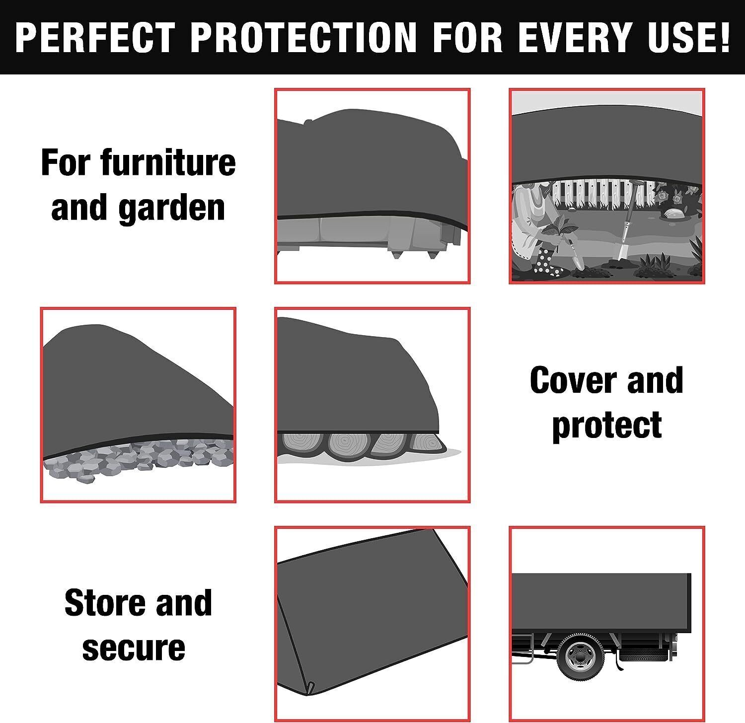 ✅ Waterproof material means that during rain or snow it will not leak onto items that have been covered with a tarpaulin.