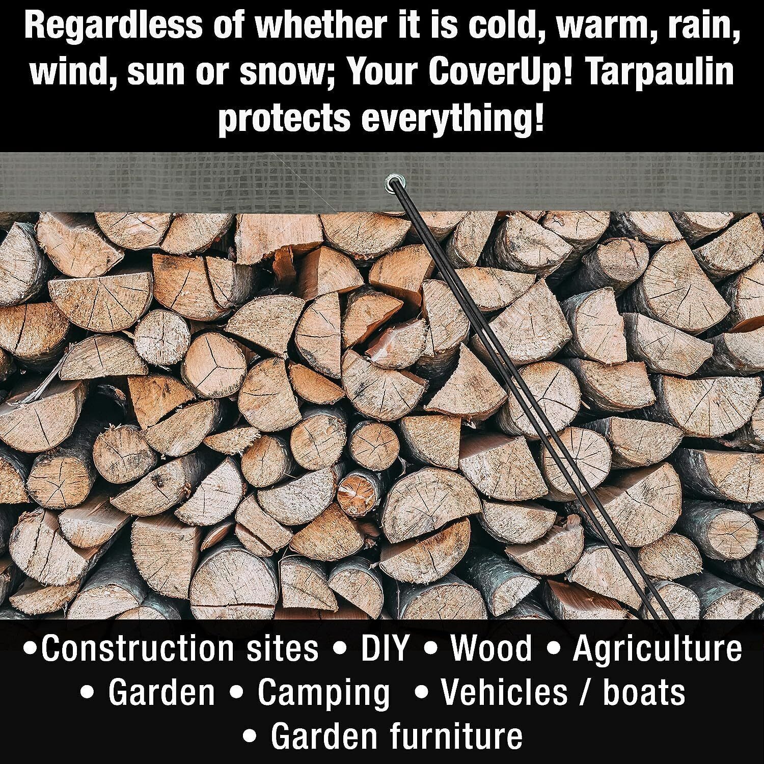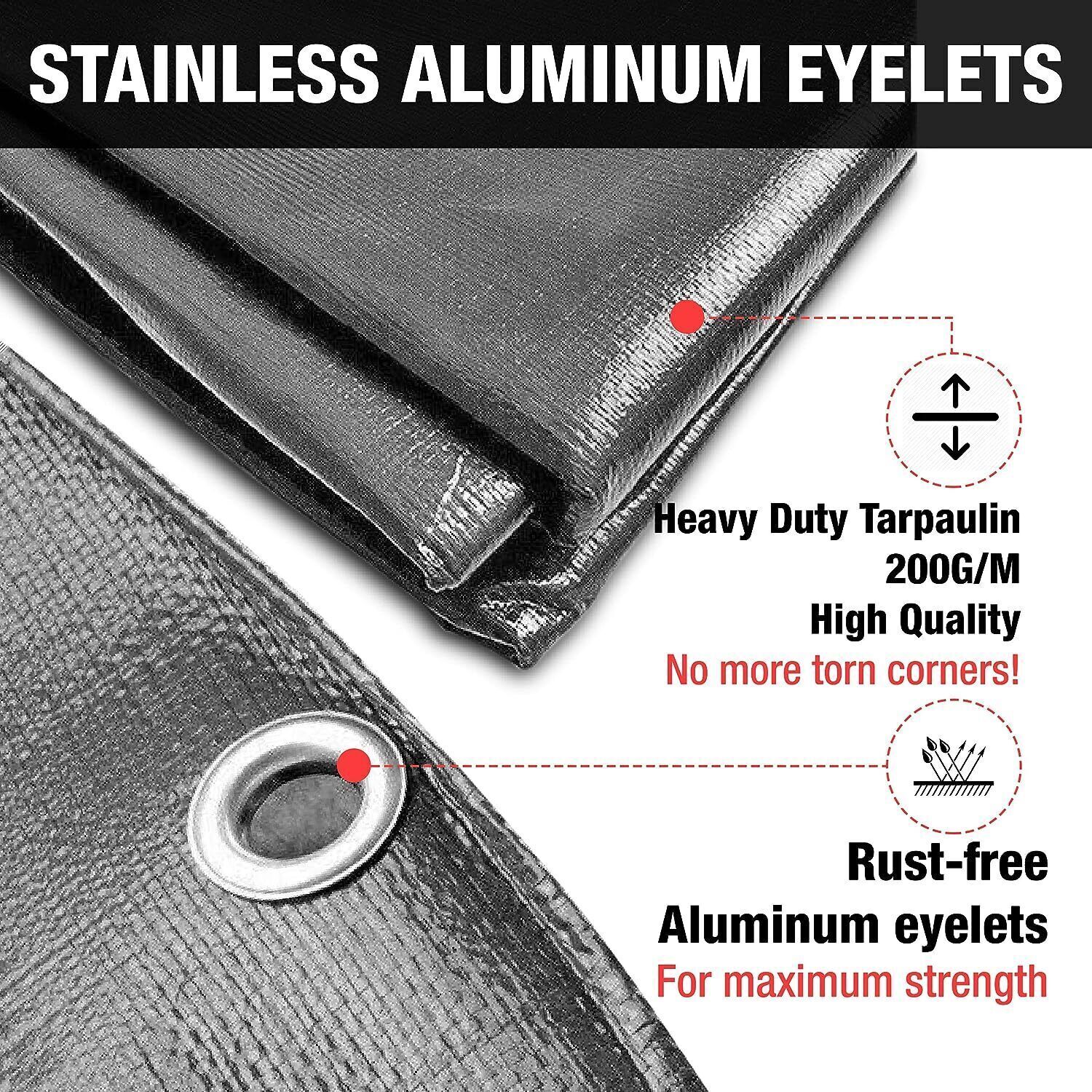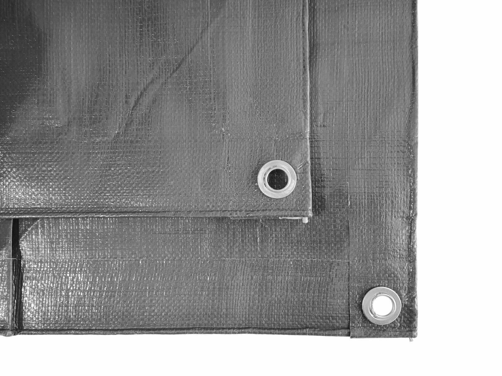 The tarpaulin has aluminum eyelets with a diameter of 12mm (you can easily put strings through them), which are spaced along the entire length of the tarpaulin, every 100 cm from each other. They allow you to conveniently attach the tarpaulin and to hang it easily. ⭐️ The edges of the tarpaulin have been reinforced and welded with a cord around the perimeter, making the whole thing durable and tear-resistant. Waterproof and durable material The tarpaulin is made of PE polyethylene fabric, which is a material resistant to wind, water and low temperatures. In addition, it also has UV stabilization. ✅ Waterproof material means that during rain or snow it will not leak onto items that have been covered with a tarpaulin. ✅ The laminated finish allows you to easily keep the tarpaulin clean, because dirt or dust will be easy to wash off it.