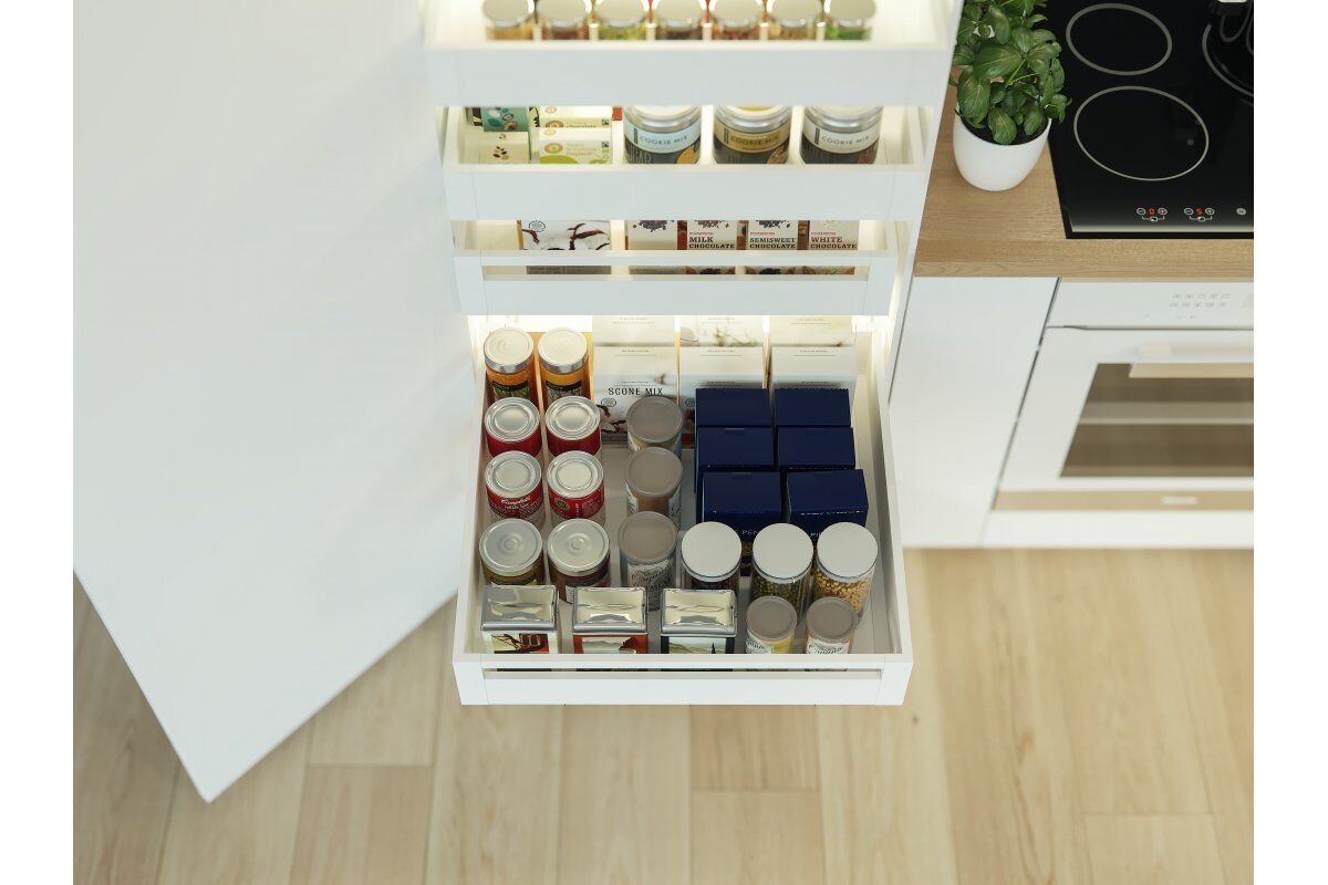 Description: The Modern Box drawer under the oven is available in two color variants and is ideal for everyday use. It allows you to develop an additional, narrow place under the oven. The drawer has full extension guides with a load of up to 40 kg and a silent closing system, ensuring quiet operation.