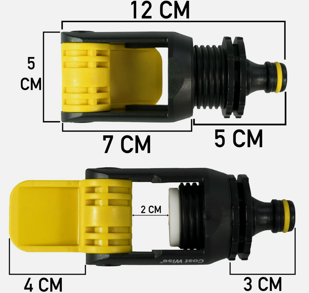 The connector can be connected to almost any tap and water valve with a diameter of up to 35mm.