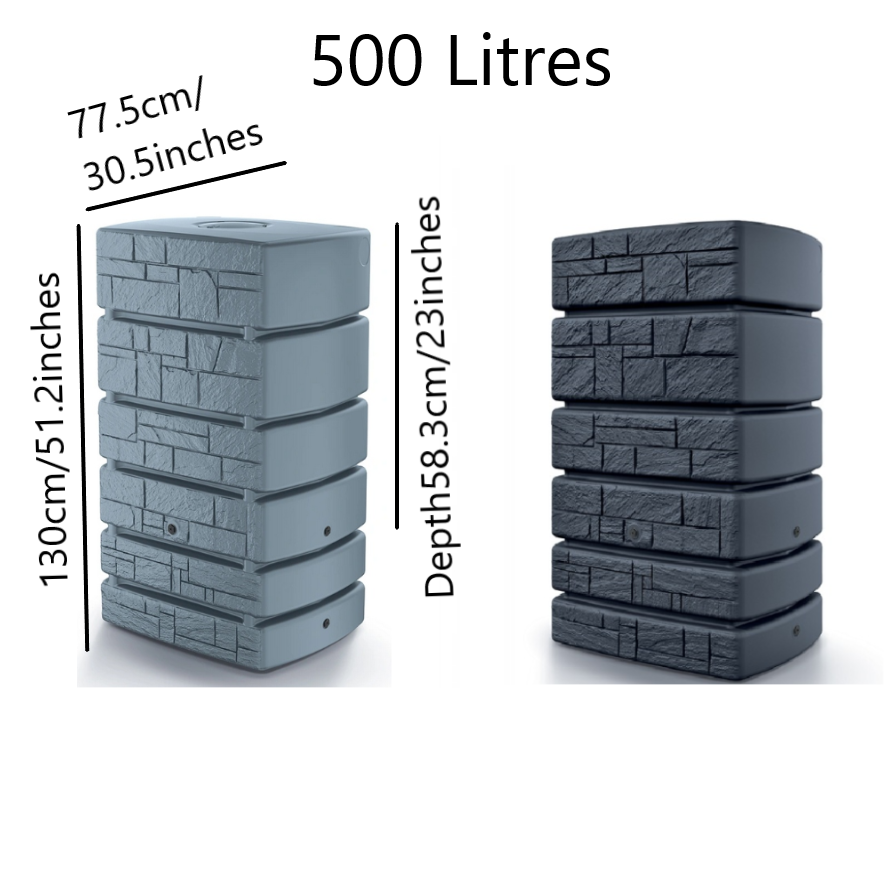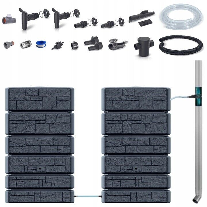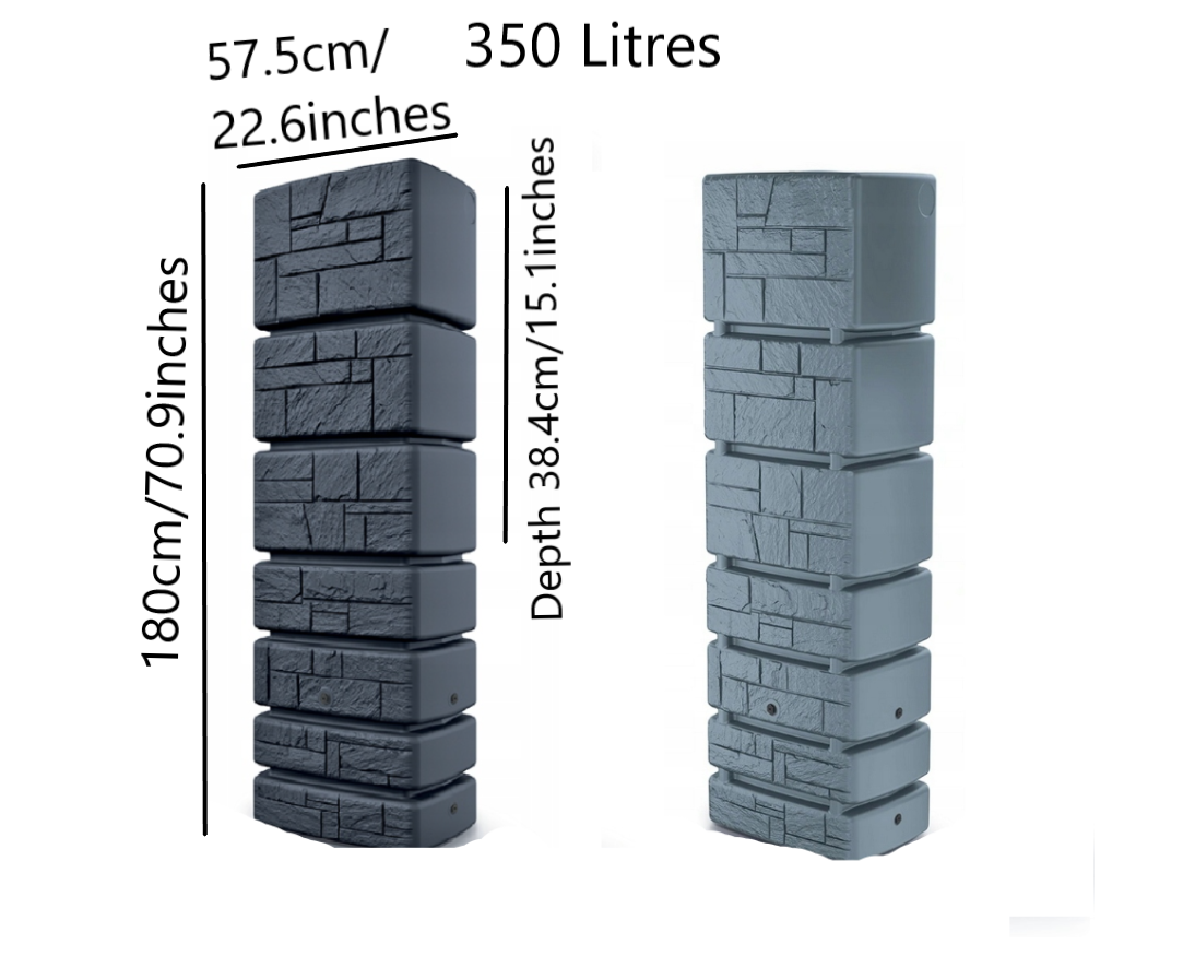 TOWER STONE rain shower – anthracite 350L or 500L for rainwater In addition, the tank at the base has a drain hole that is used to drain water from the tank if necessary The AQUA TOWER water tank allows for effective collection of rainwater. The tank function allows you to collect rainwater from downpipes. This water tank has 4 integrated threads, allowing you to easily connect the faucet to the gutter or modularly connect the tanks together to increase the volume of water collected. It is possible to connect the tanks with each other (please request it via message)